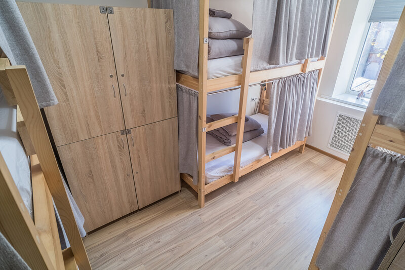 спальное место на двухъярусной кровати в 6-и местном номере для женщин, розетка, шторка, шкаф. Общая ванная комната на этаже: душ, с/у.