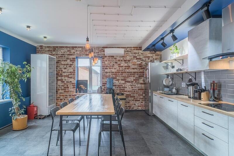 Для самостоятельного приготовления пищи есть оборудованная кухня с бытовыми приборами, посудой и обеденной зоной, на которой любой из жильцов может приготовить любимые блюда на свой вкус. Так же в здании есть много кафе и ресторанов, где можно отведать различные блюда. Поблизости расположено много магазинов и супермаркетов, где продают свежие продукты.