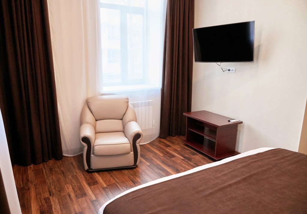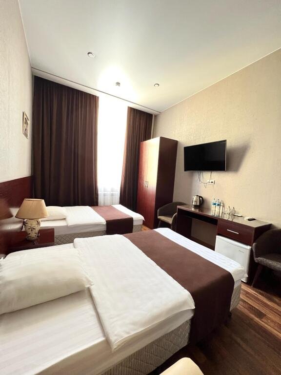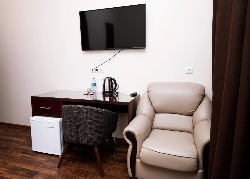 Номер уютно обставлен и оснащён необходимым, чтобы отдохнуть после долгого и насыщенного дня. Имеются телевизор и халат. Перечисленные услуги есть не во всех номерах.