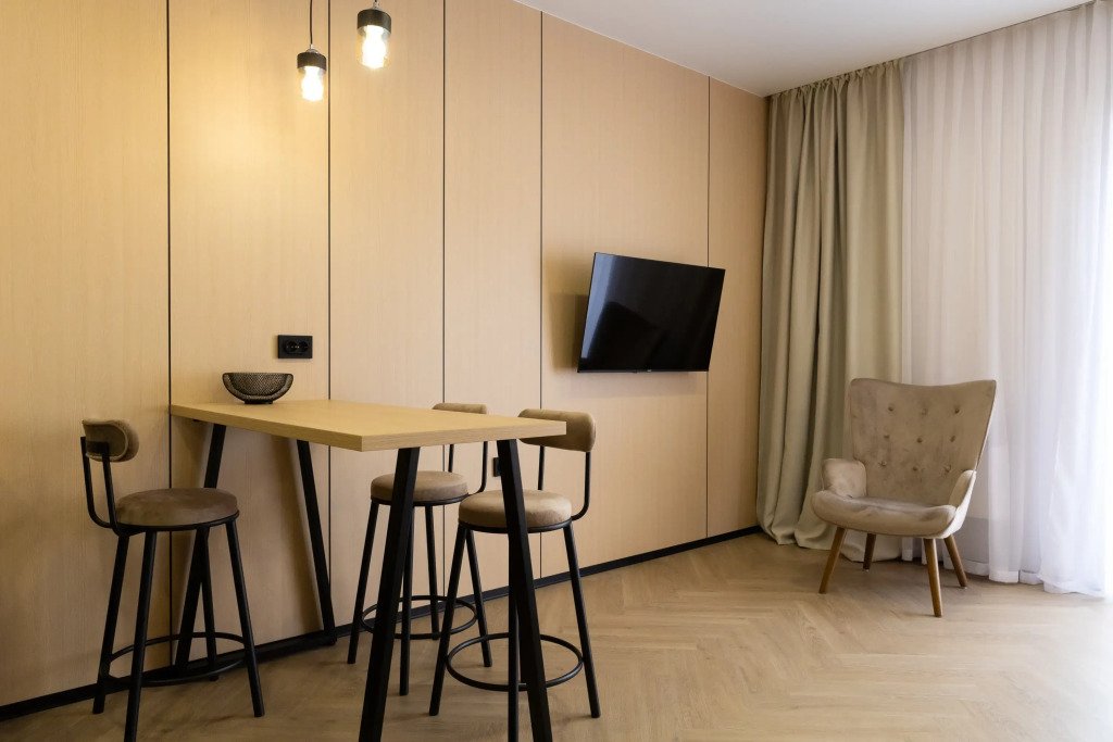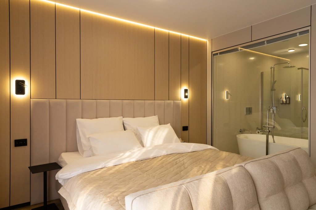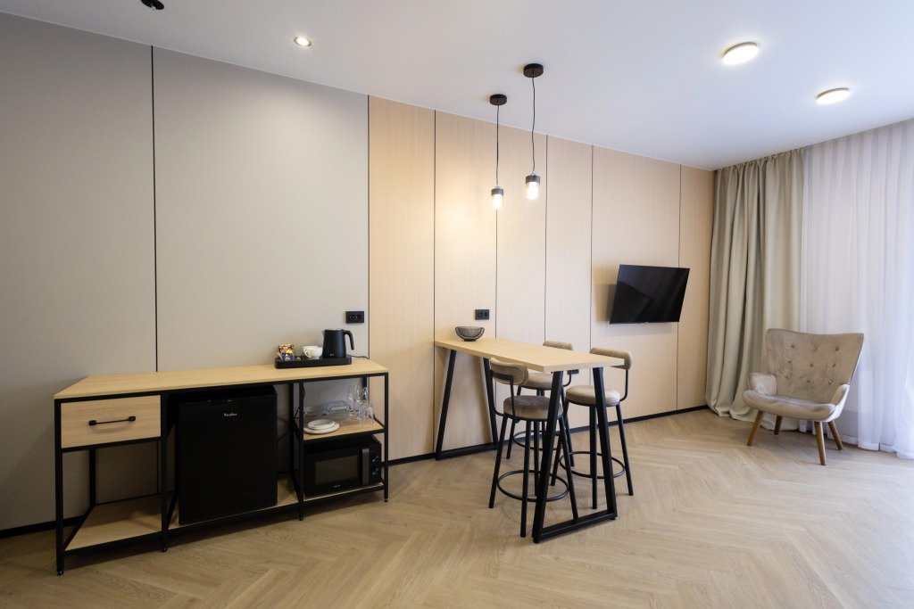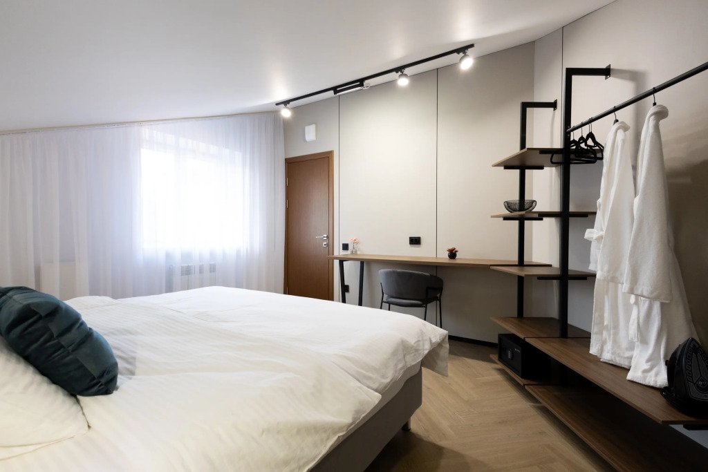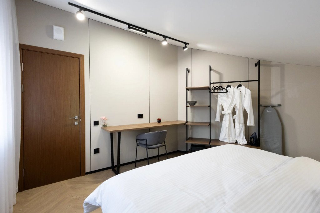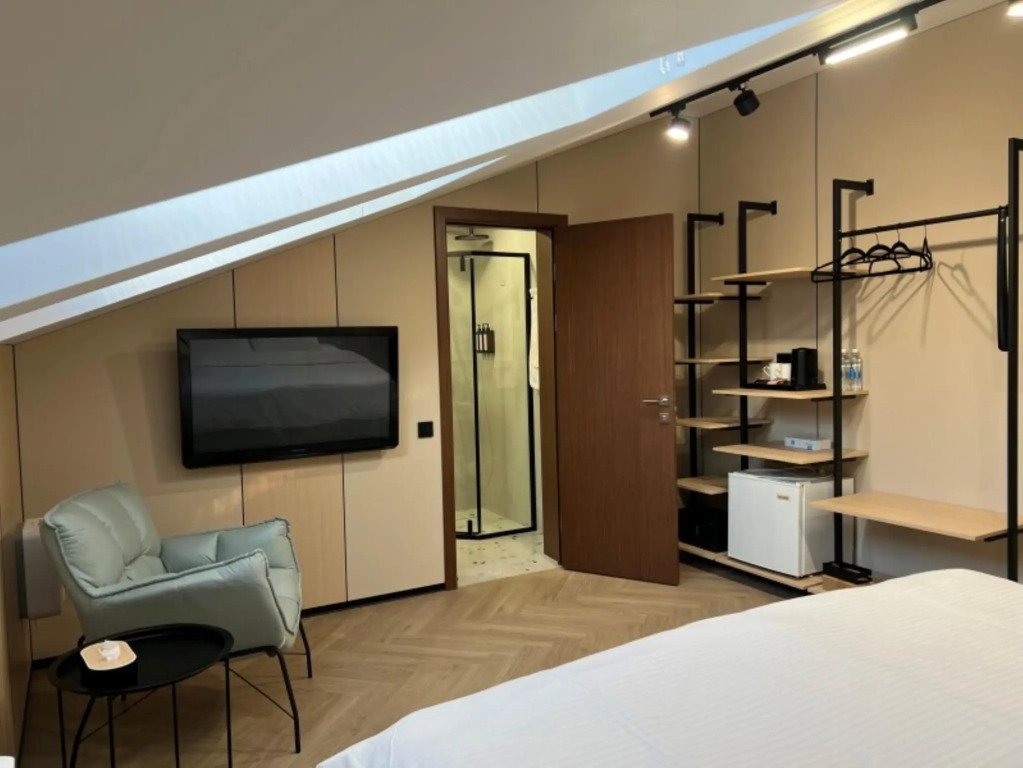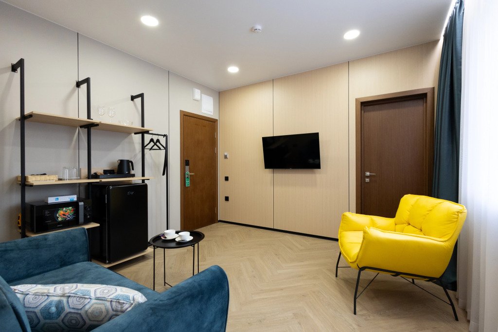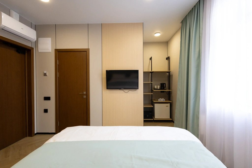 В номере вас будут ждать телевизор, мини-бар и халат. Перечисленные услуги есть не во всех номерах.