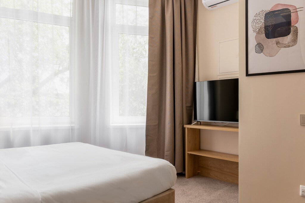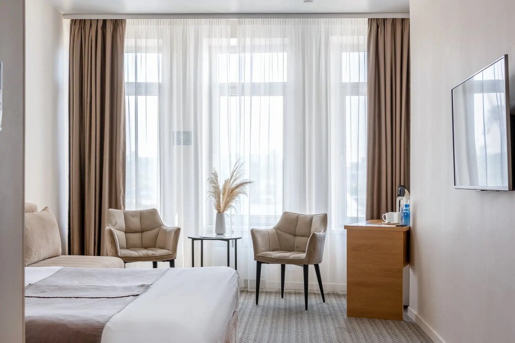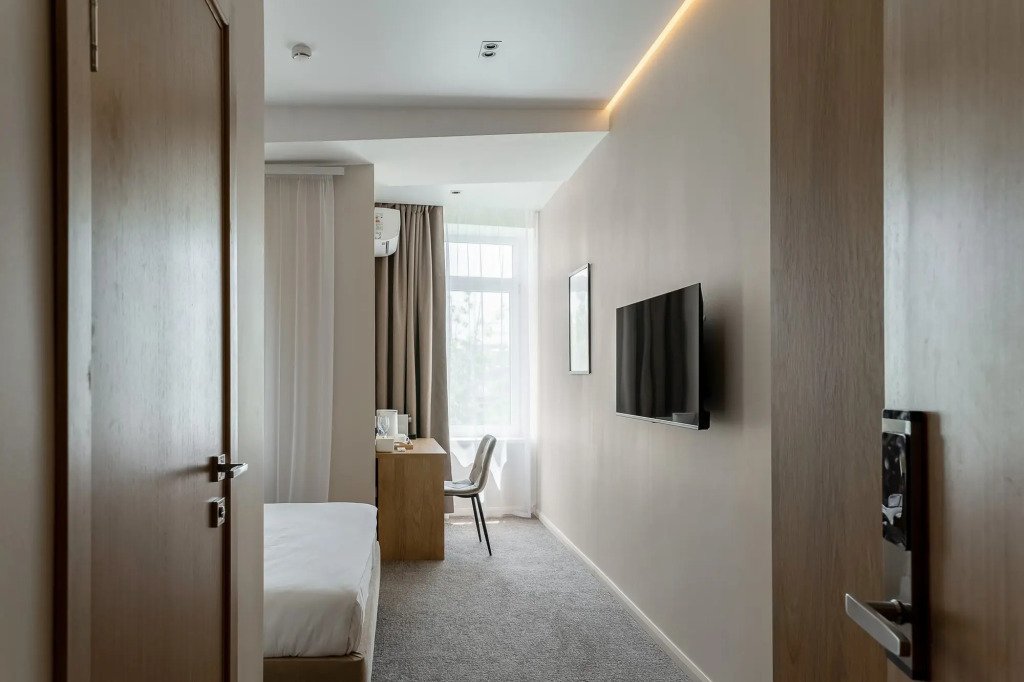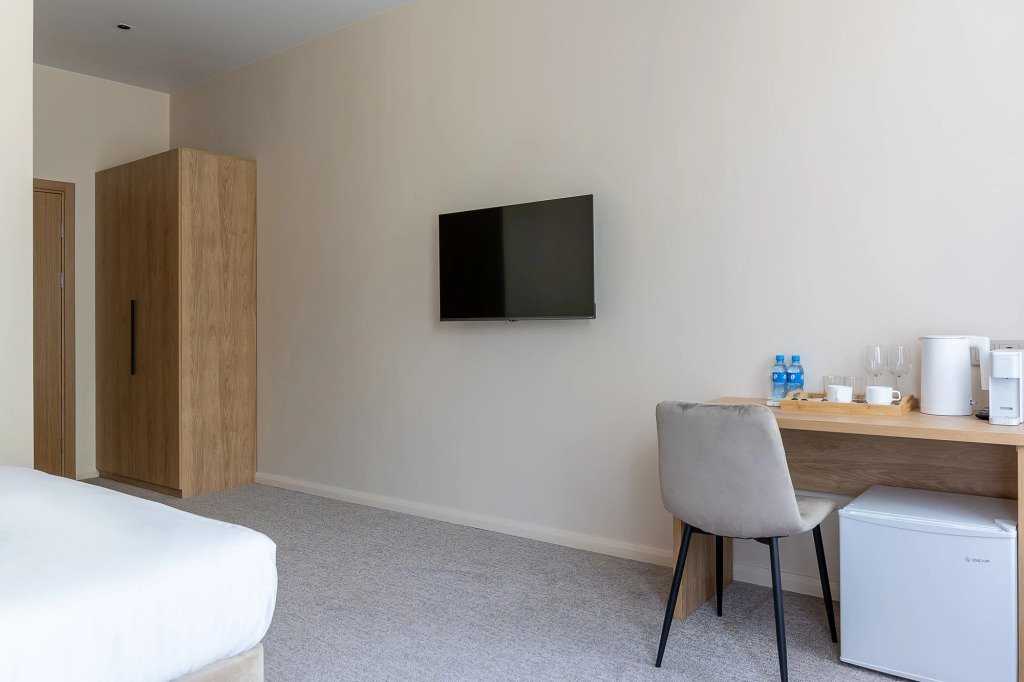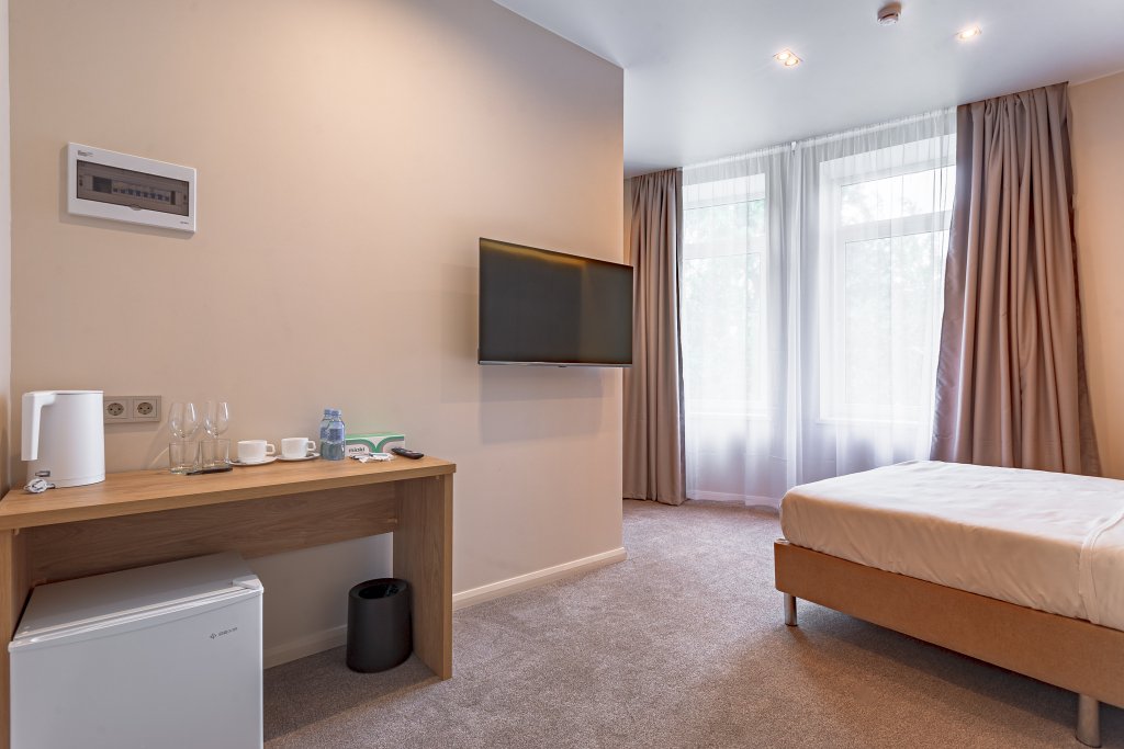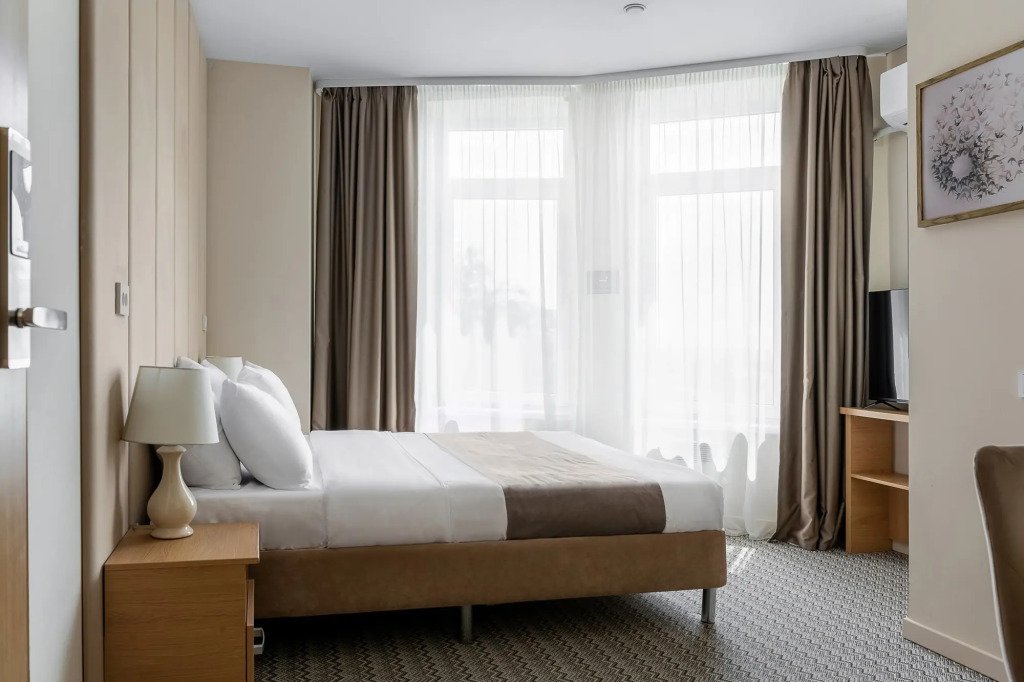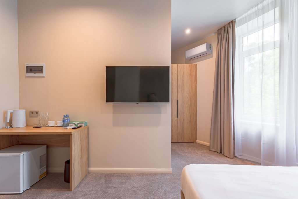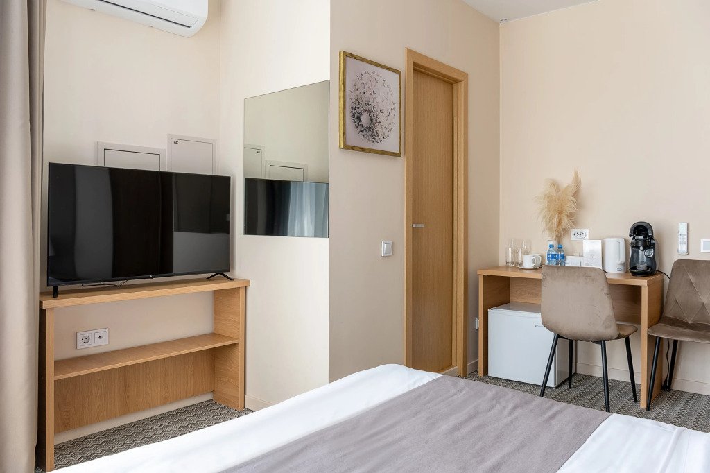 В номере гостей ждут телевизор и халат. Оснащение зависит от выбранной категории номера.