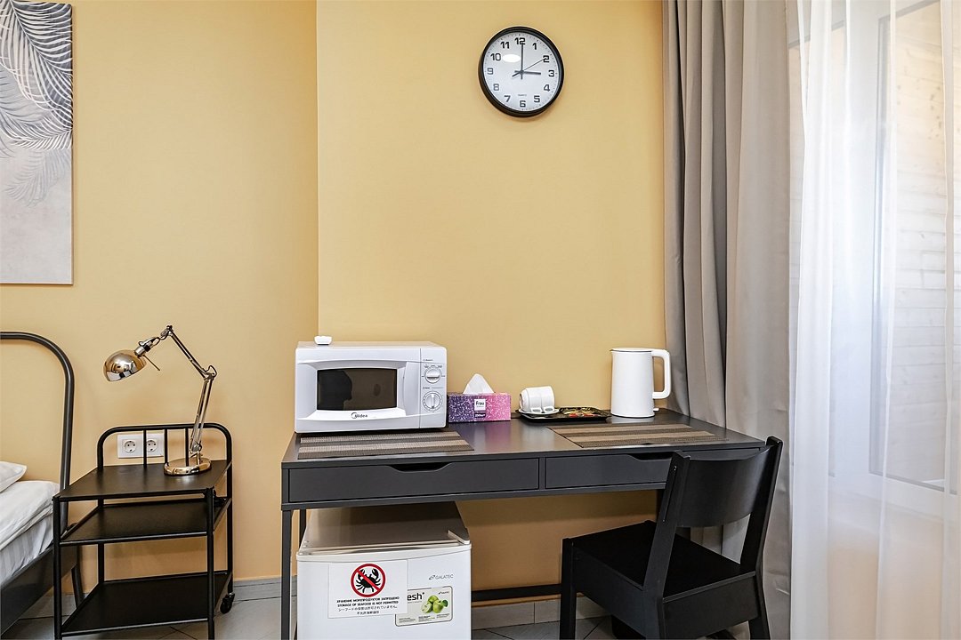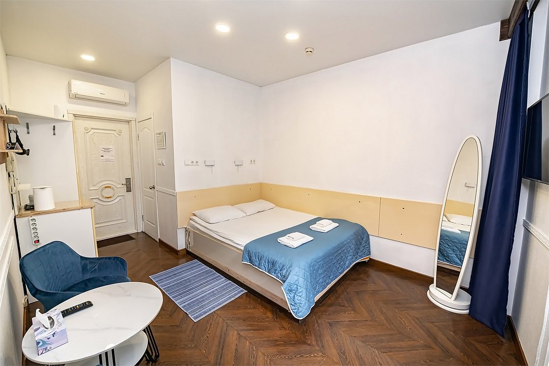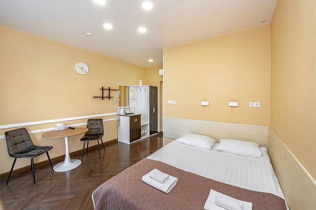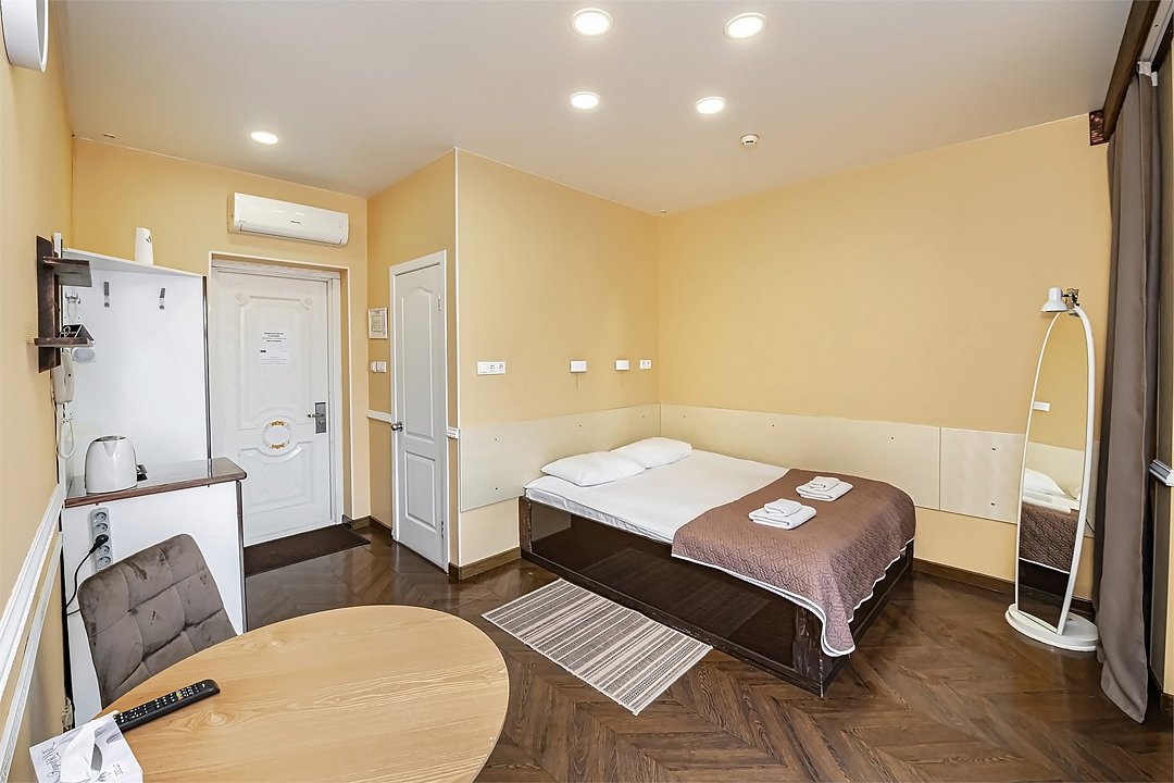 Wi-Fi, холодильник, кондиционер, система климат-контроля, светильник, настольные лампы, кулер, фен, электронные замки, утюг, обогреватель, душевая кабина, санузел, теплый пол, банные принадлежности, банные полотенца, тапочки, двуспальная кровать, тумбы, стулья, шкаф для одежды, гардеробная, вешалки, журнальный столик, обеденный стол, зеркало, чайный набор, набор посуды, чайник, унитаз, раковина, отопление, душ, кулер на этаже, вид во двор, ламинат, стул, стол, тумба, туалетные средства, туалет, цифровое тв, внутренний телефон, телевизор с плоским экраном, мини-холодильник, теплые полы, можно с питомцамиВ гостиничном номере