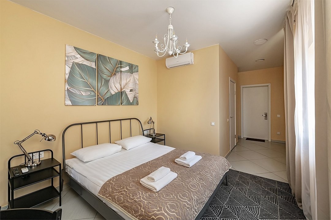 Wi-Fi, кондиционер, система климат-контроля, светильник, настольные лампы, фен, электронные замки, утюг, обогреватель, душевая кабина, санузел, теплый пол, банные принадлежности, банные полотенца, тапочки, гигиенические средства, лоджия, двуспальная кровать, тумбы, стулья, гардеробная, вешалки, журнальный столик, письменный стол, зеркало, ковер, чайный набор, набор посуды, обслуживание номеров, информационная карта, меню, чайник, унитаз, раковина, питьевая вода, отопление, душ, вид на город, кулер на этаже, стаканы, столовые приборы, стиральная машина и сушилка, кофейный столик, стол, туалетные средства, туалет, цифровое тв, телевизор с плоским экраном, мини-холодильник, москитная сетка, теплые полы, номер для некурящих, можно с питомцамиВ гостиничном номере
