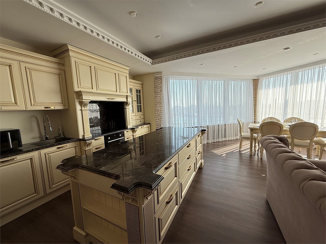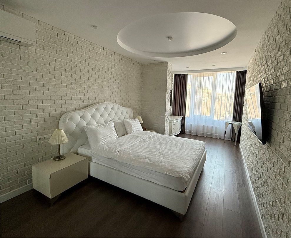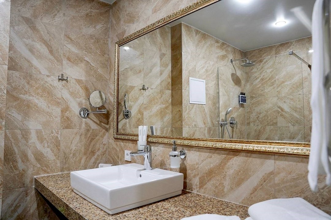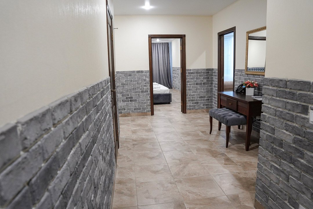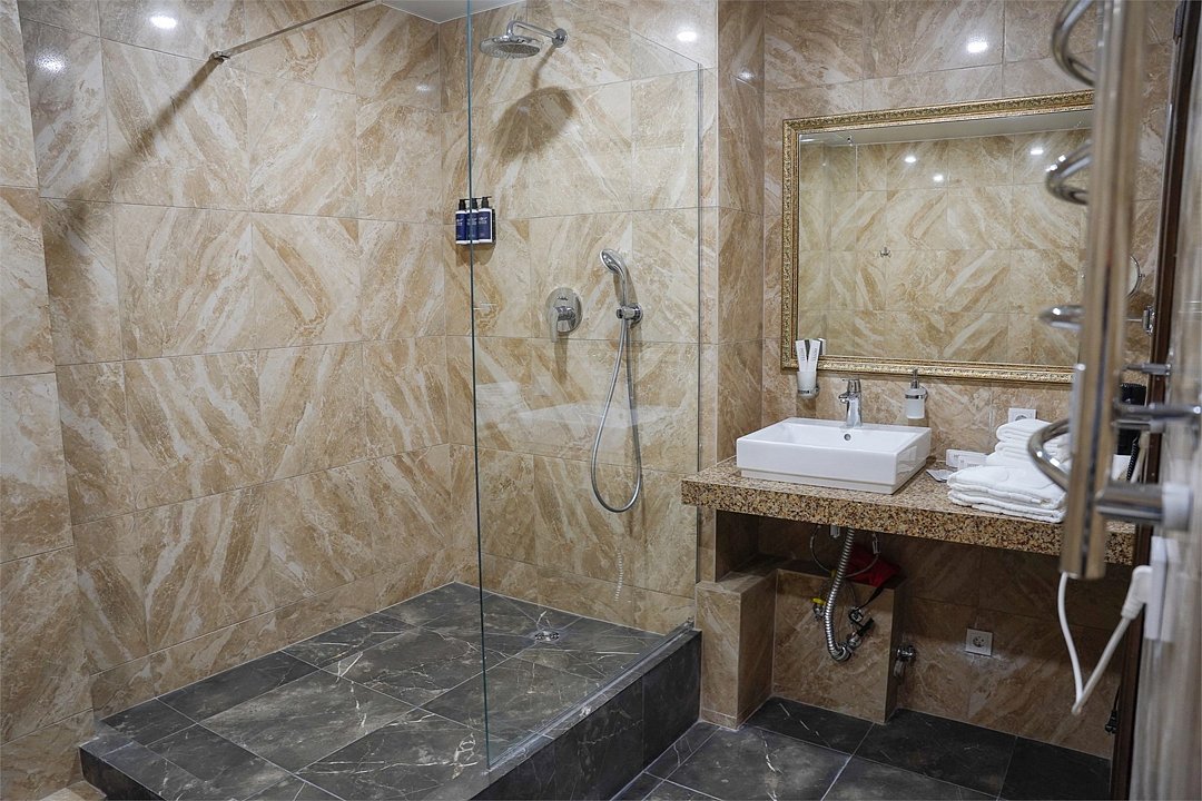 Четырехкомнатный Люкс состоит из трех спален, просторной и функциональной кухни, уютной гостиной и гардеробной. Кухня оснащена всем необходимым для приготовления пищи: варочная панель, духовой шкаф, микроволновая печь, холодильник, набор посуды и столовых приборов. К услугам гостей в номере: косметические принадлежности, халаты и тапочки, гладильный набор, три LED-телевизора с ТВ-приставкой, бесплатный беспроводной Wi-Fi. Вид на город. Для гостей отеля – скидка в размере 20% в СПА-зону комплекса.Услуги и удобства