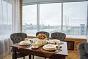 Номер оснащен спальней с кроватью King-size, кондиционером в каждой комнате, просторной ванной комнатой, кухонной зоной. К услугам гостей в номере: косметические принадлежности, халаты и тапочки, гладильный набор, LED-телевизор с ТВ-приставкой, бесплатный беспроводной Wi-Fi. Вид на залив и вид на город. Для гостей отеля посещение тренажерного зала и сауны бесплатное. Для гостей отеля – скидка в размере 20% в СПА-зону комплекса.Услуги и удобства