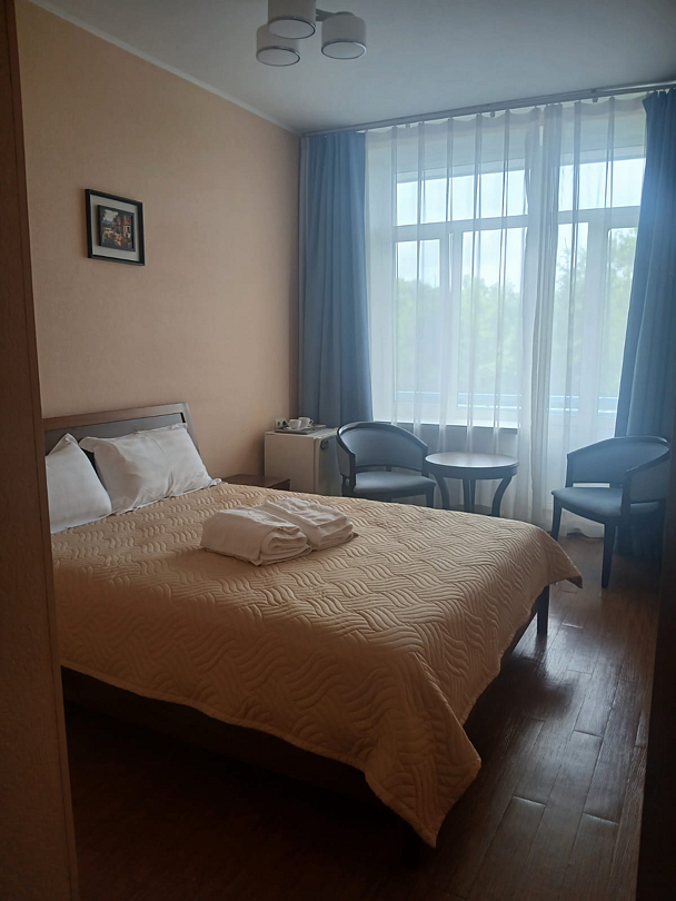 В номерах повышенной комфортности 2-комнатных двухместных в спальне или 2 кровати и 1 двуспальная, в гостиной раскладной диван, который служит спальным местом для третьего гостя.
