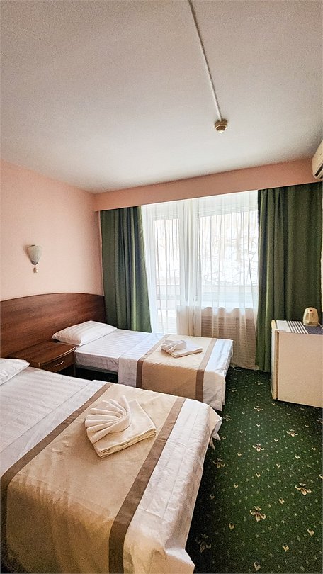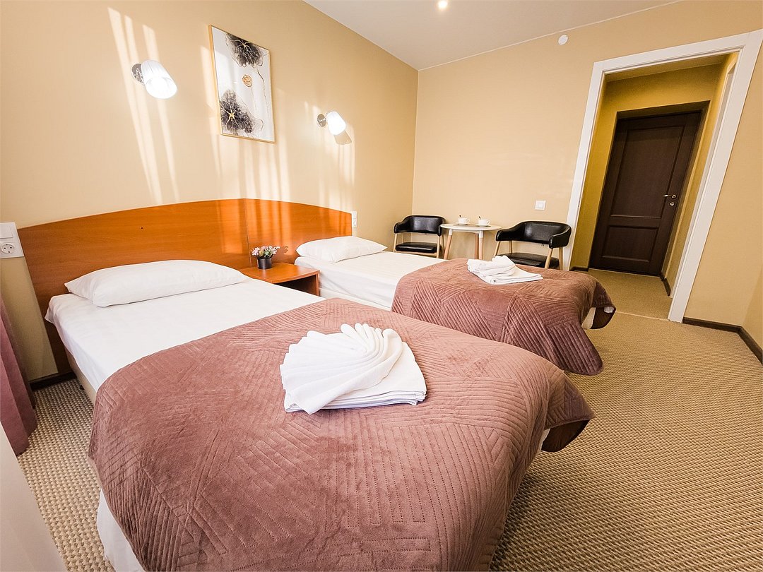 Номер для двоих с двумя односпальными кроватями. В нем есть все необходимое для полноценного отдыха. Номер оснащен кондиционером, телевизором, холодильником и чайником. К вашим услугам беспроводной интернет и телефонная связь. В номере отдельный санузел с небольшой ванной, а также выход на открытый балкон. * На фото представлены лишь некоторые из номеров данной категории. Детали интерьера могут незначительно отличаться.Услуги и удобства