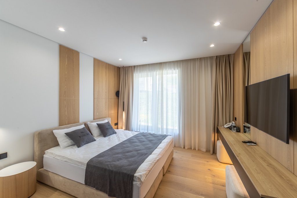 В номере гостей будут ждать телевизор, мини-бар и халат. В номер есть вид на море или во двор. Оснащение зависит от выбранной категории номера.