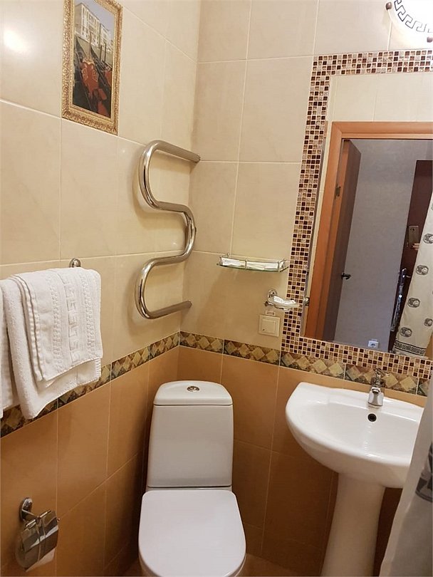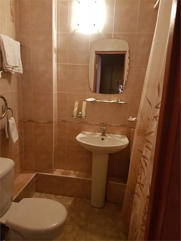 телевизор, Wi-Fi, холодильник, светильник, вентилятор, обогреватель, ванная комната, ванна, полутораспальная кровать, шкаф для одежды, зеркало, унитаз, раковина, вид на город, кулер на этаже, стул, туалетные средства, внутренний телефон, рабочий столВ месте в номере