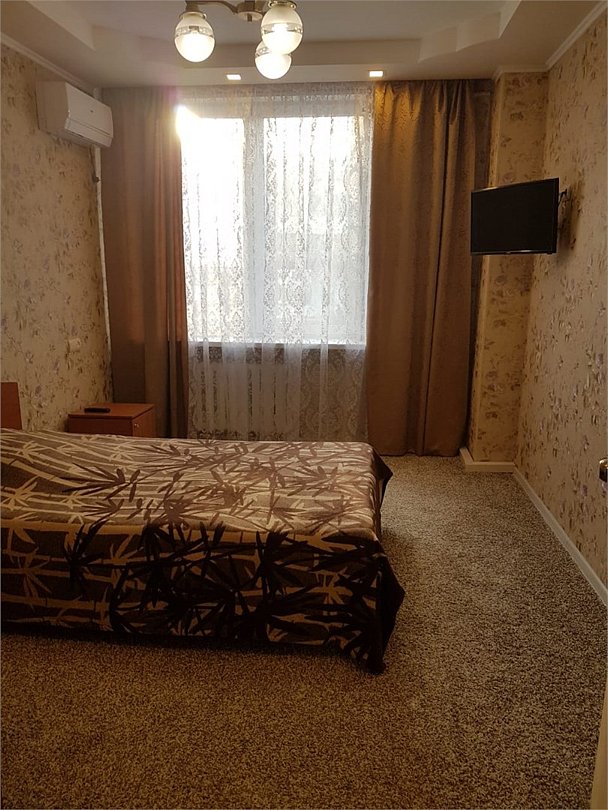 два телевизора, Wi-Fi, телефон, холодильник, светильник, вентилятор, обогреватель, ванна, банные принадлежности, двуспальная кровать, две односпальные кровати, шкаф для одежды, зеркало, две комнаты, чайный набор, набор посуды, чайник, унитаз, раковина, вид на море, вид на город, кулер на этаже, стул, туалетные средства, внутренний телефон, рабочий столВ номере