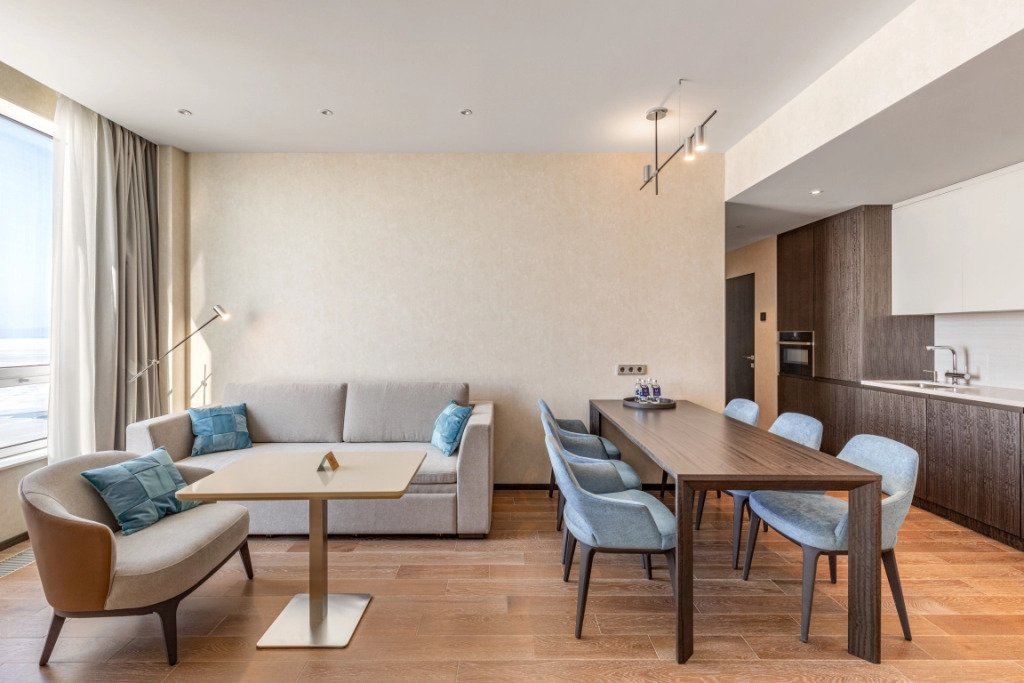 Апарт-отель RODINA Residences Vladivostok 5* находится во Владивостоке и занимает видовые этажи Многофункционального комплекса BURNY — первого проекта на Дальнем Востоке, возведённого по концепции «город в городе». С одной стороны от отеля — океан и набережная, с другой — центр города с близостью объектов городской и краевой инфраструктуры. Железнодорожный и морской вокзалы, аэроэкспресс, набережная Спортивной гавани, Центральная площадь, краевая и городская Администрации, рестораны, театры, многочисленные арт-пространства и яхт-клубы находятся недалеко от отеля.