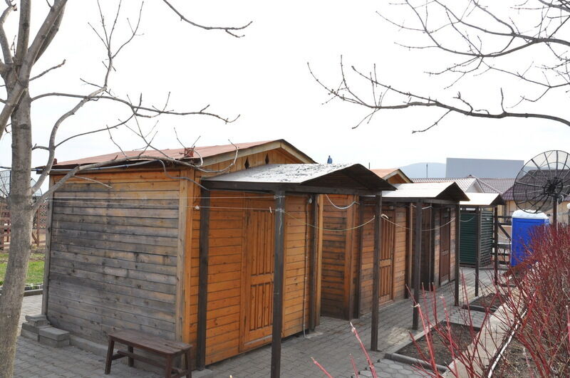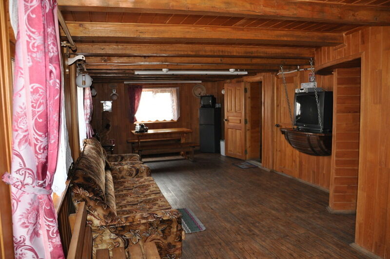 В доме есть две кровати, либо двухспальная кровать, тумбочка. Туалет рядом с домиками (биотуалет), душ в бане. В каждом доме – одноразовые шампуни, мыло, зубная паста, полотенца.