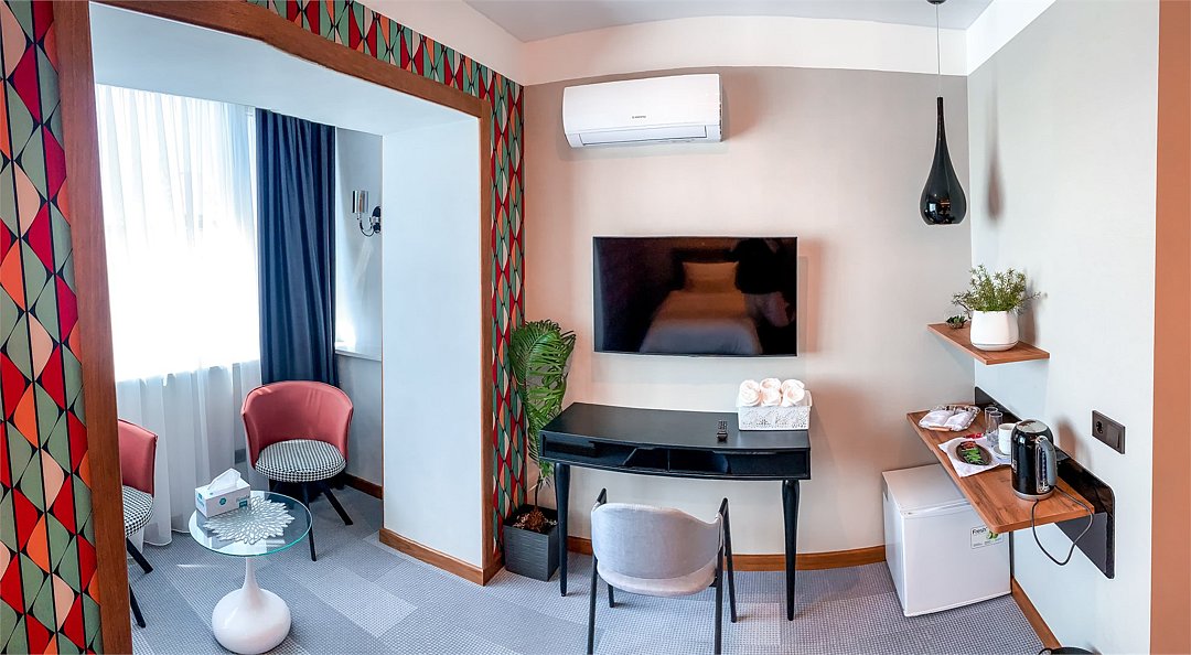 кондиционер, светильник, фен, электронные замки, обогреватель, душевая кабина, халаты, тапочки, гигиенические средства, унитаз, кулер на этаже, телевизор с плоским экраном, мини-холодильник, без питомцевВ номере