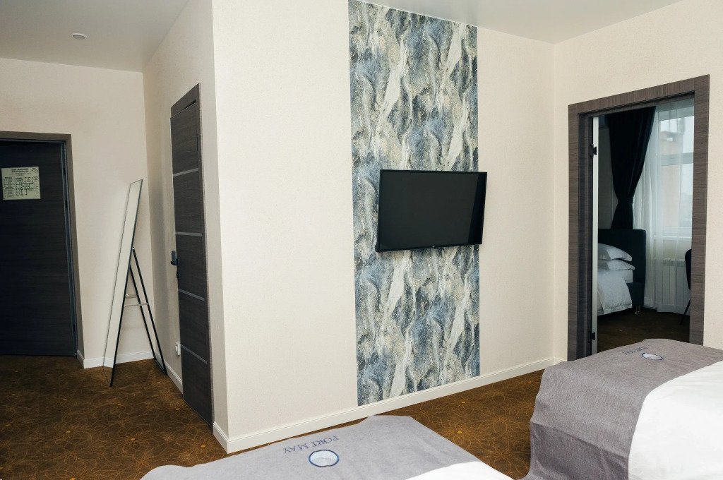 Чтобы вы могли отдохнуть после долгого дня, в номере есть телевизор и халат. Оснащение зависит от выбранной категории номера.