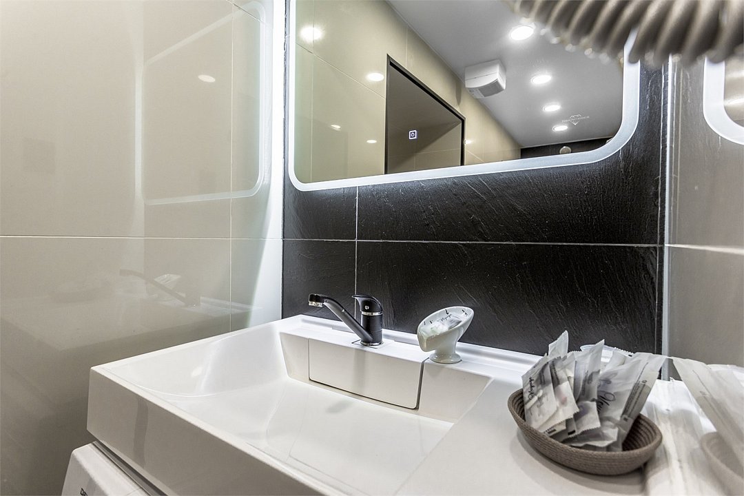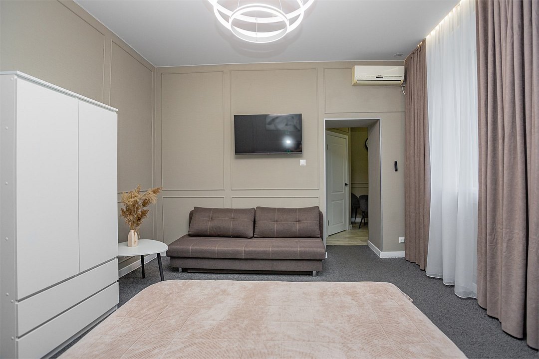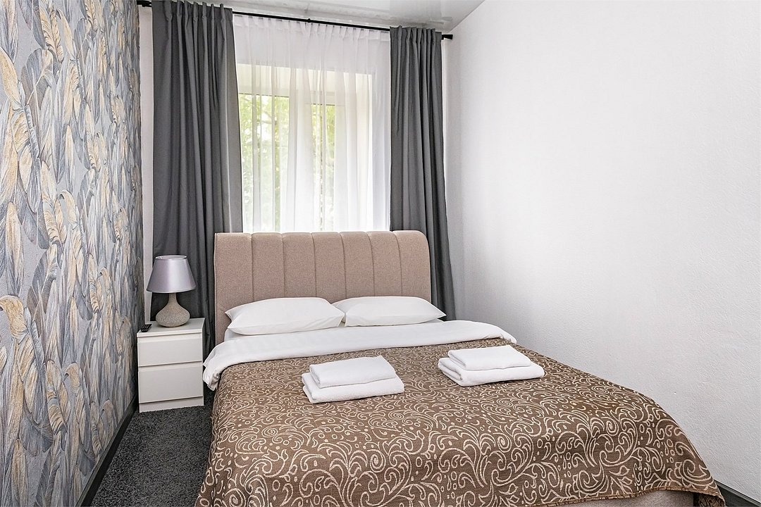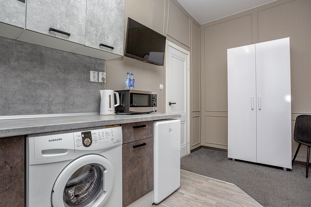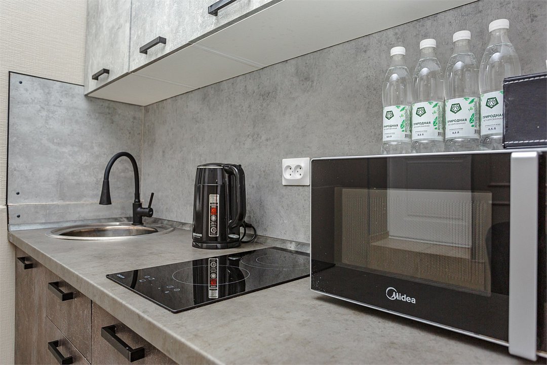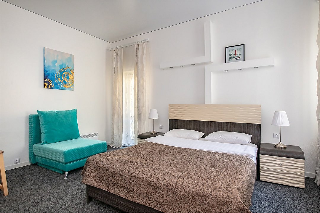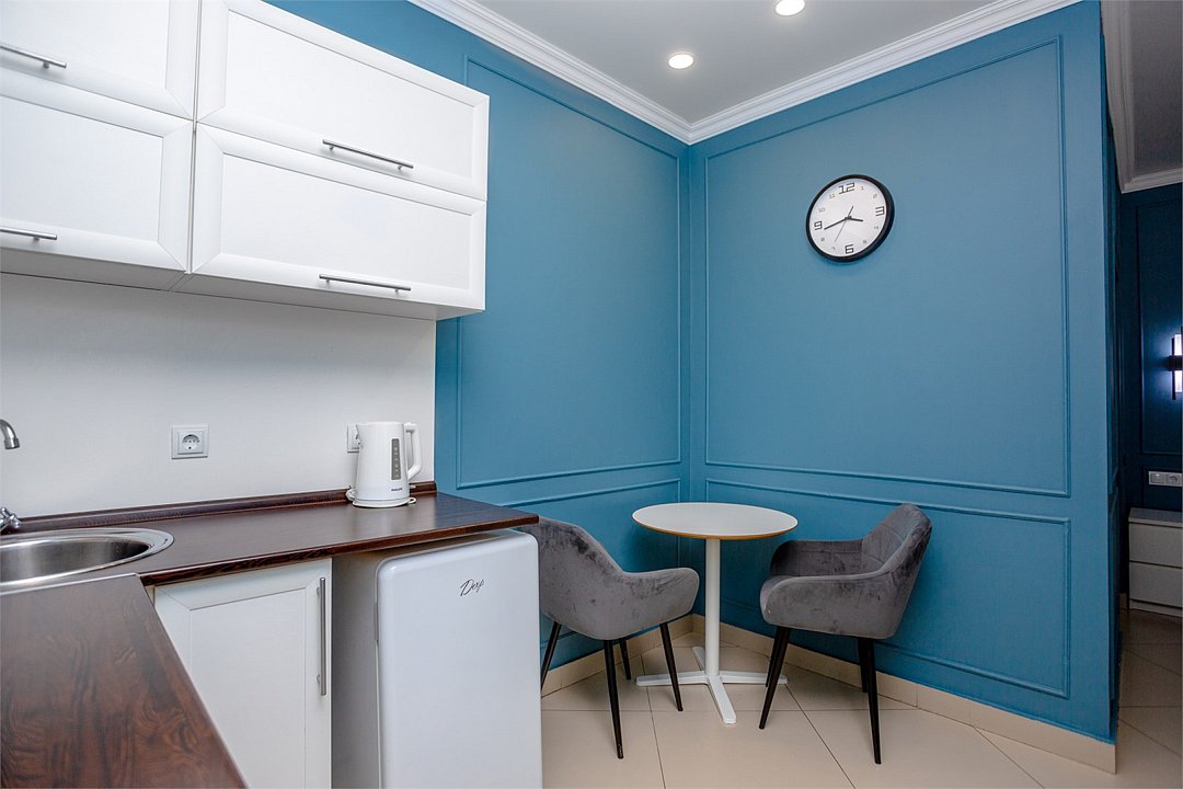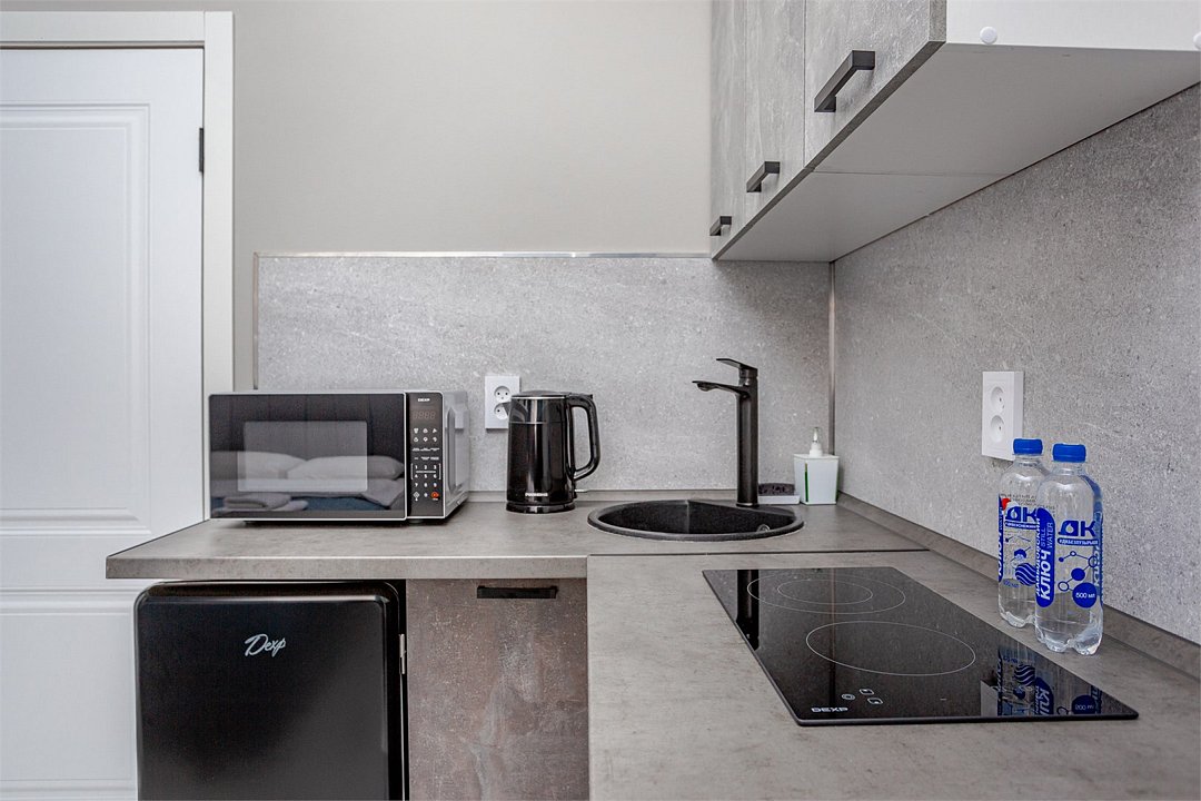 Максимальное размещение: 2+1. Комфортабельные однокомнатные номера категории «Улучшенный» отличаются большей площадью, наличием дополнительного спального места (раздвижной диван), а также отдельной кухонной зоной. Номер сочетает в себе все необходимое для полноценного отдыха, как семейным парам с детьми, так и для друзей небольшой компанией. Обратите, пожалуйста, внимание, что определенный дизайн номера забронировать невозможно, вы можете указать в комментариях к бронированию или администратору, какой номер хотите, и наш администратор учтет это при наличии данного свободного номера.Услуги и удобства