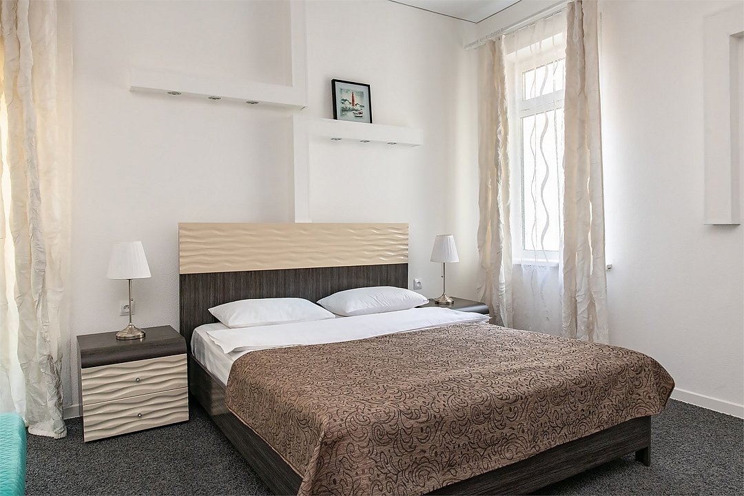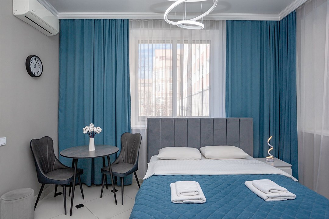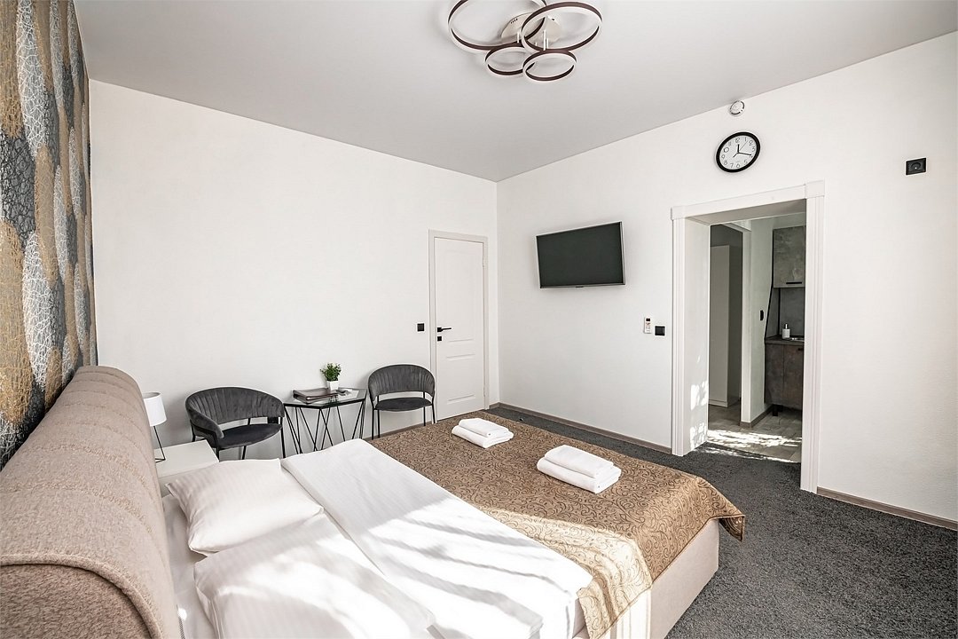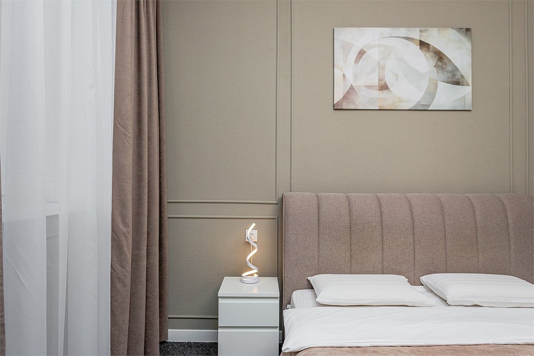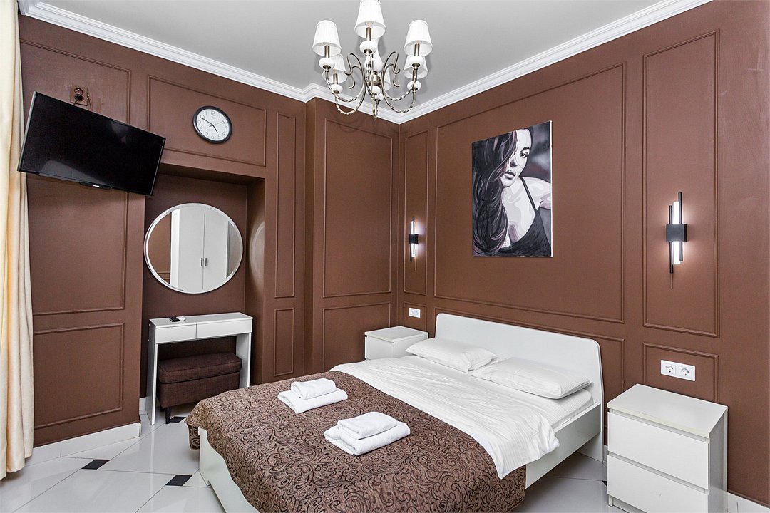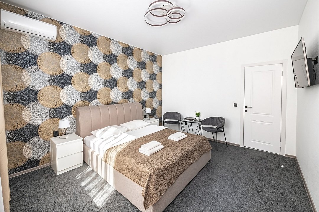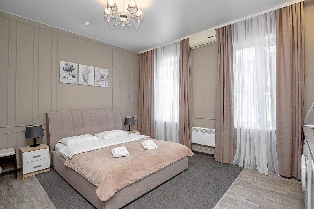 Максимальное размещение: 2 человека. Комфортабельные апартаменты категории «Стандарт» сочетают в себе современный стиль, комфорт и уют. Апартаменты соответствуют международным стандартам и отличаются собственным оригинальным дизайном. В них есть все необходимое для полноценного комфортного отдыха. Обратите, пожалуйста, внимание, что определенный дизайн номера забронировать невозможно, вы можете указать в комментариях к бронированию или администратору, какой номер хотите, и наш администратор учтет это при наличии данного свободного номера.Услуги и удобства