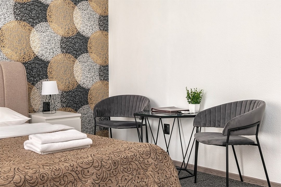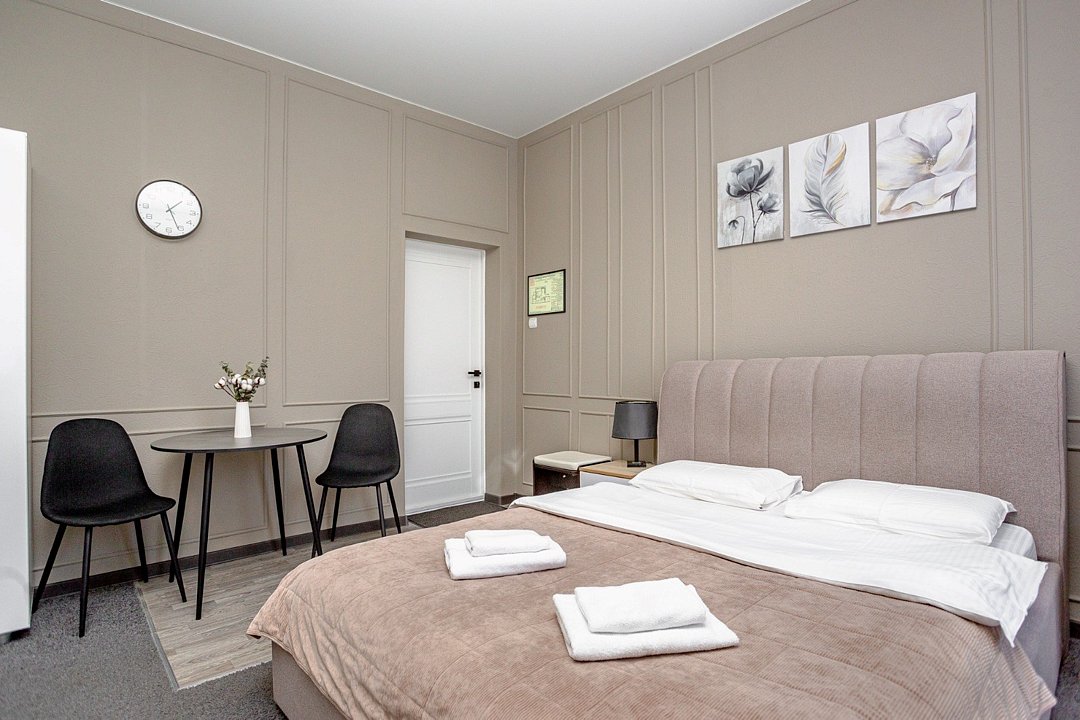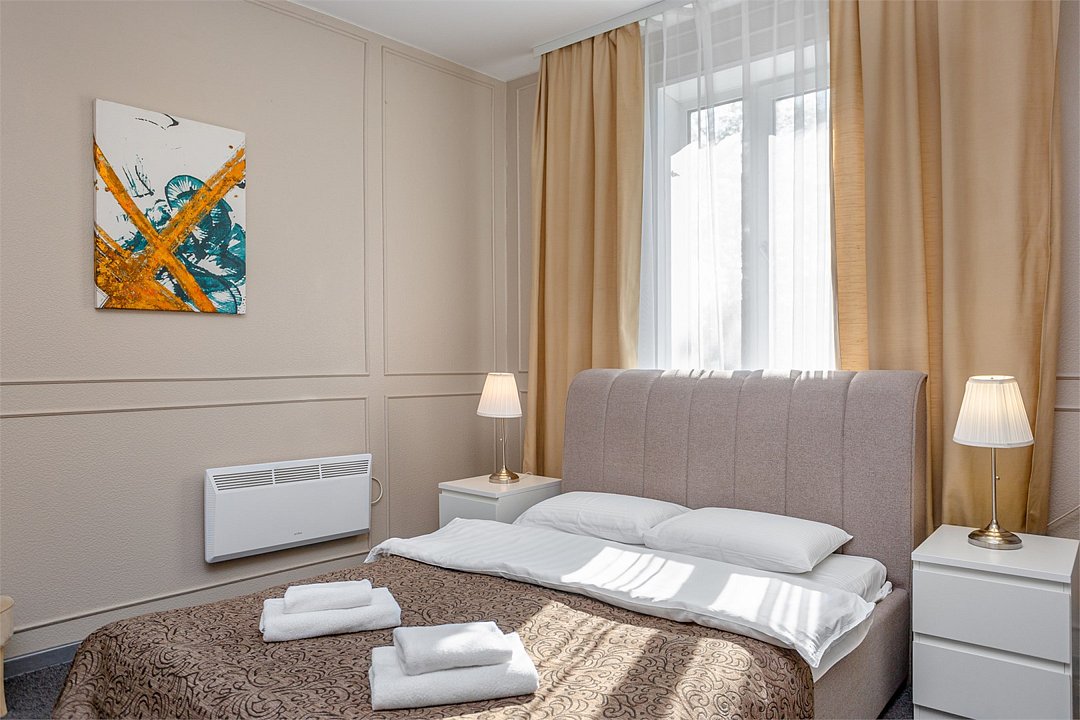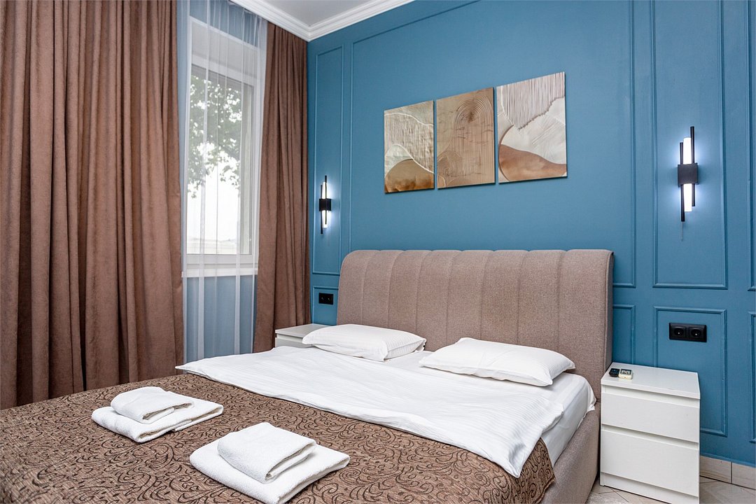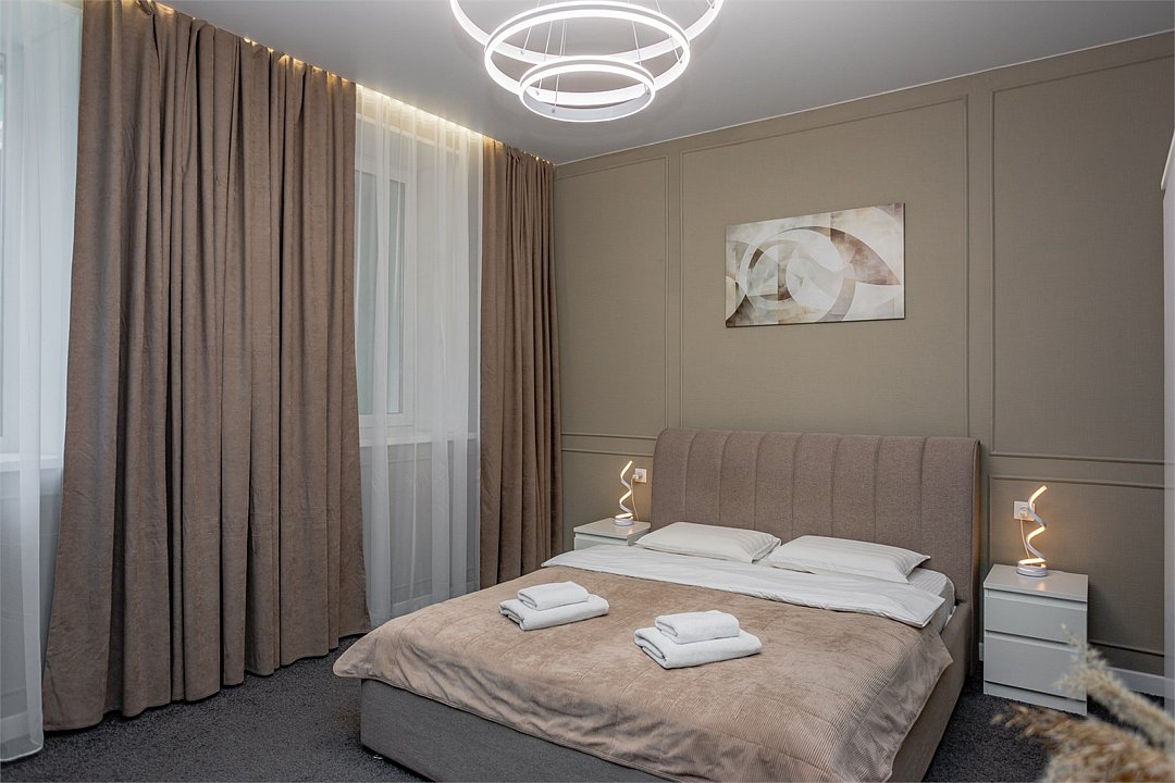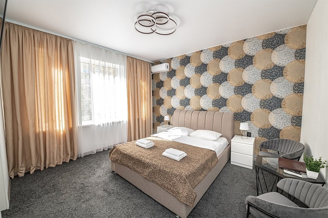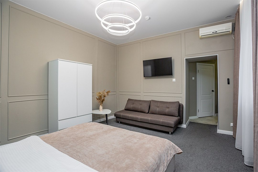 Максимальное размещение: 2 человека. Комфортабельные апартаменты категории «Стандарт» сочетают в себе современный стиль, комфорт и уют. Апартаменты соответствуют международным стандартам и отличаются собственным оригинальным дизайном. В них есть все необходимое для полноценного комфортного отдыха. Обратите, пожалуйста, внимание, что определенный дизайн номера забронировать невозможно, вы можете указать в комментариях к бронированию или администратору, какой номер хотите, и наш администратор учтет это при наличии данного свободного номера.Услуги и удобства