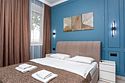 Комфортабельные номера категории «Люкс» отличаются более современным исполнением с оригинальными дизайнерскими решениями. Вместимость отдельных номеров составляет от 2-х до 3-х человек, что необходимо учитывать при бронировании. Номер сочетает в себе все необходимое для полноценного отдыха и соответствуют международным стандартам, что поможет Вам чувствовать себя как дома! Обратите, пожалуйста, внимание, что определенный дизайн номера забронировать невозможно, вы можете указать в комментариях к бронированию или администратору, какой номер хотите, и наш администратор учтет это при наличии данного свободного номера.Услуги и удобства