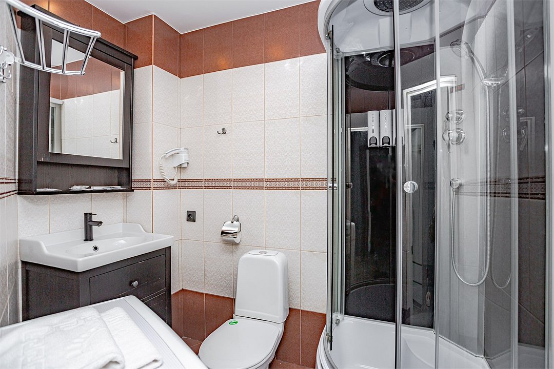 телевизор, спутниковое телевидение, кабельное телевидение, интерактивное телевидение, DVD-плеер, Wi-Fi, интернет, холодильник, кондиционер, светильник, настольные лампы, фен, вентилятор, электронные замки, плита для приготовления пищи, кофемашина, микроволновая печь, утюг, обогреватель, душевая кабина, банные принадлежности, халаты, банные полотенца, тапочки, гигиенические средства, двуспальная кровать, диван, кресла, тумбы, стулья, шкаф для одежды, гардеробная, вешалки, журнальный столик, письменный стол, стол для переговоров, обеденный стол, зеркало, пуфики, мебельный гарнитур, унитаз, раковина, мягкая мебель, душ, кулер на этаже, кресло, можно с питомцамиВ номере