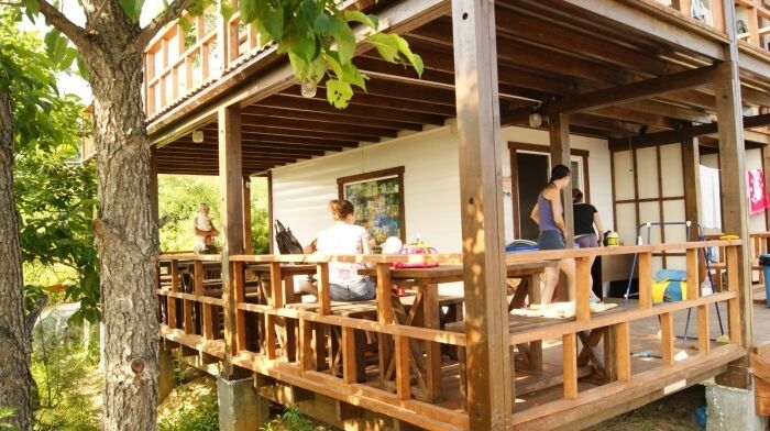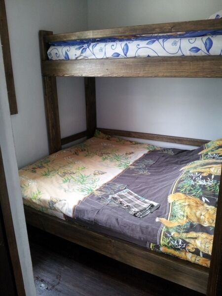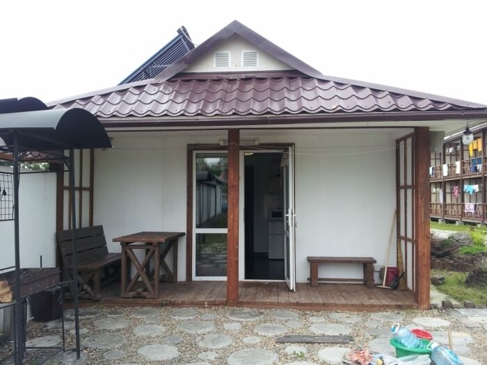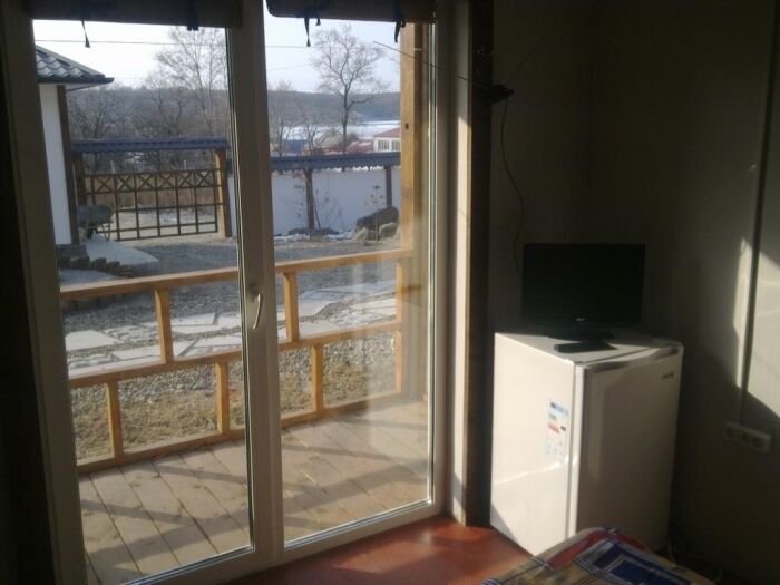 Двухярусные кровати, душ, туалет, телевизор, холодильник, стол, стулья, чайник, бесплатный Wi-Fi интернет, веранда, дворик с мангалом.