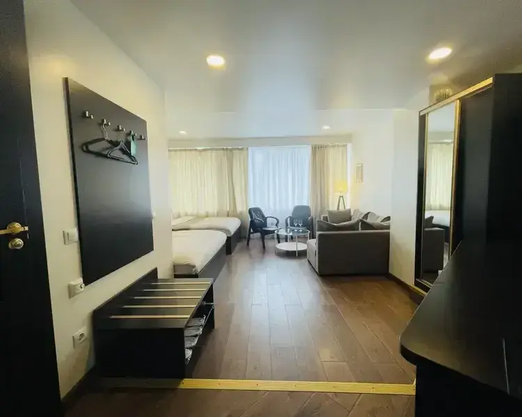 2 двуспальные кровати, диван, тв, кондиционер, теплый пол , письменный стол, wi-fi.Услуги и удобства