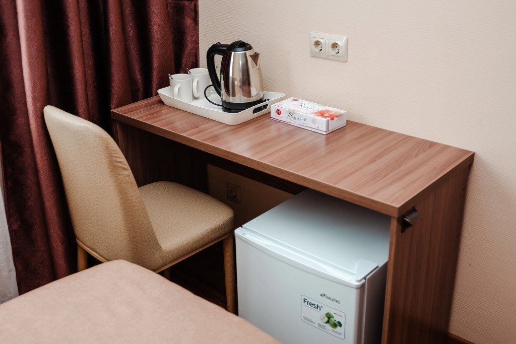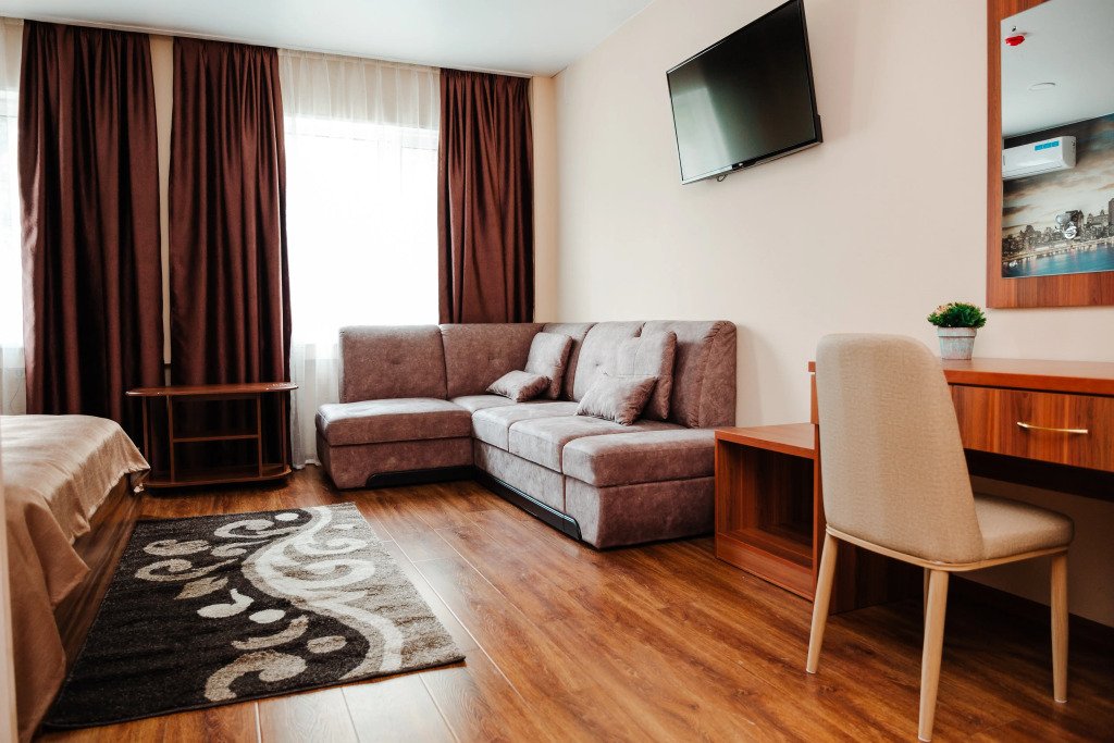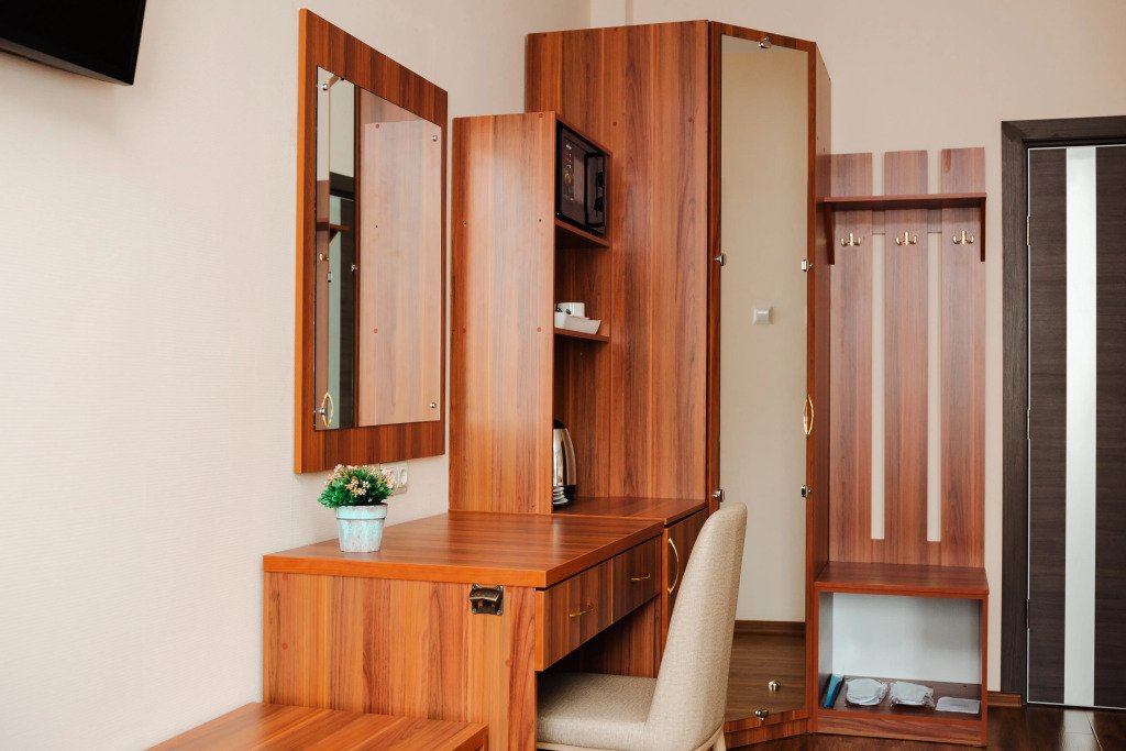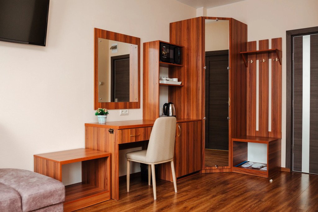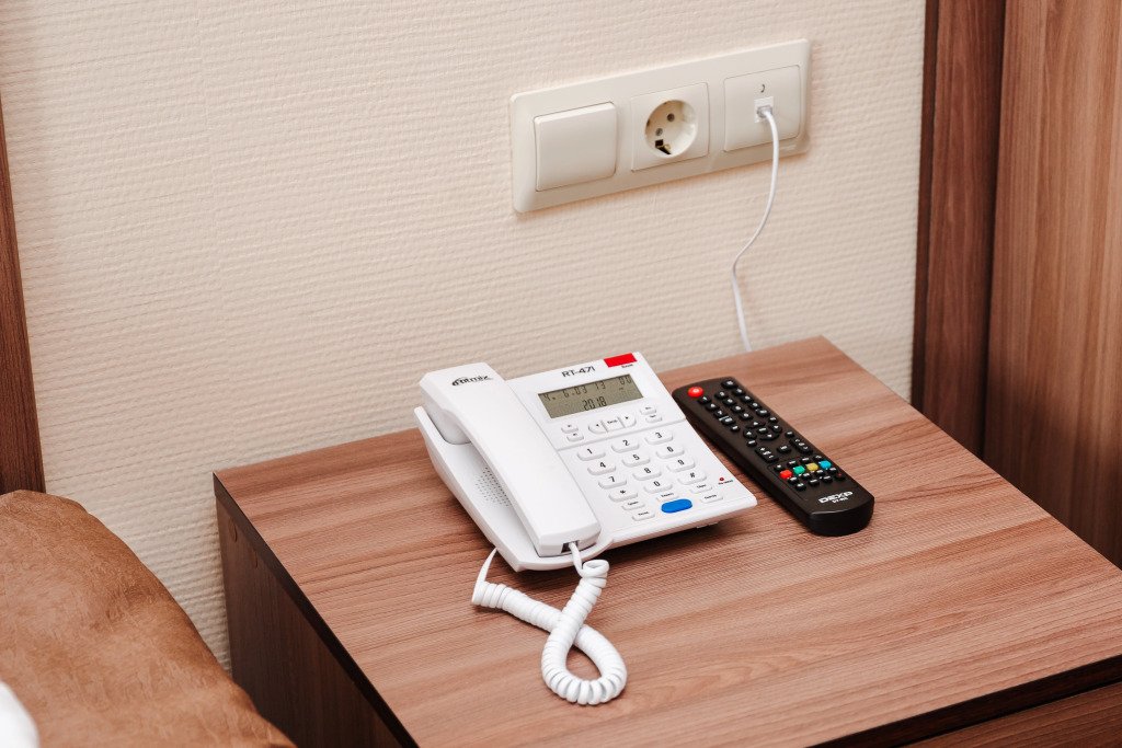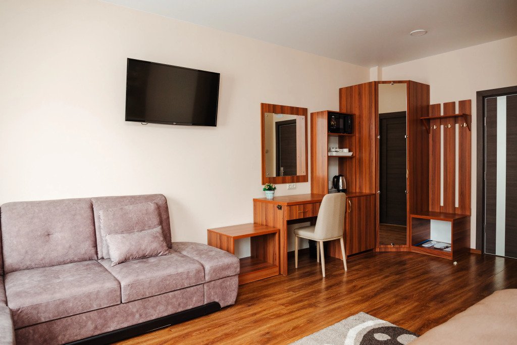 В номере вы найдёте телевизор. Оснащение зависит от выбранной категории номера.