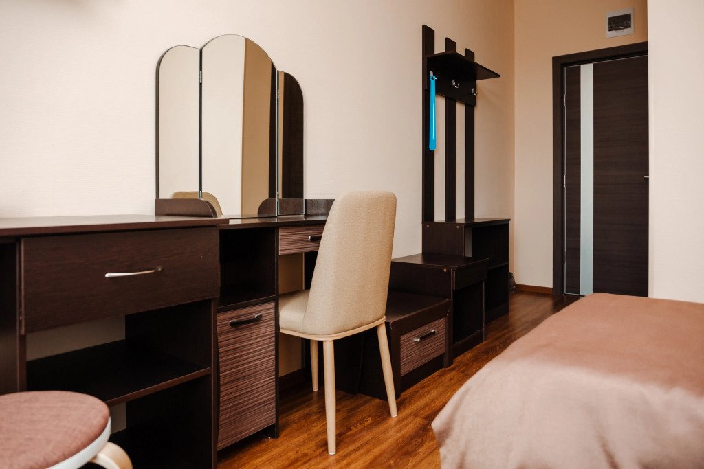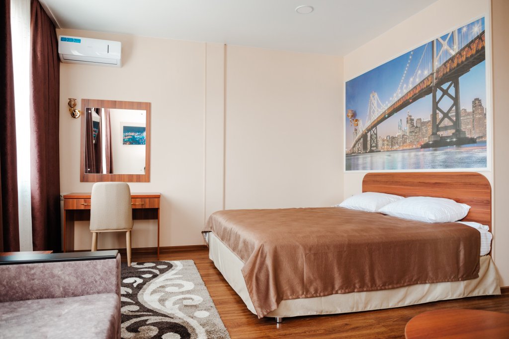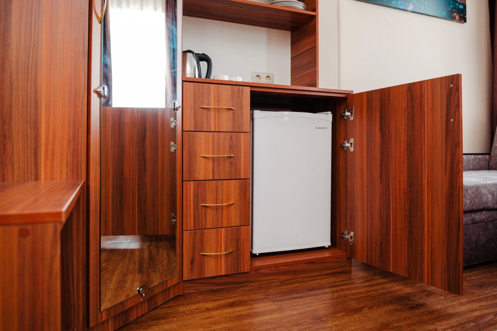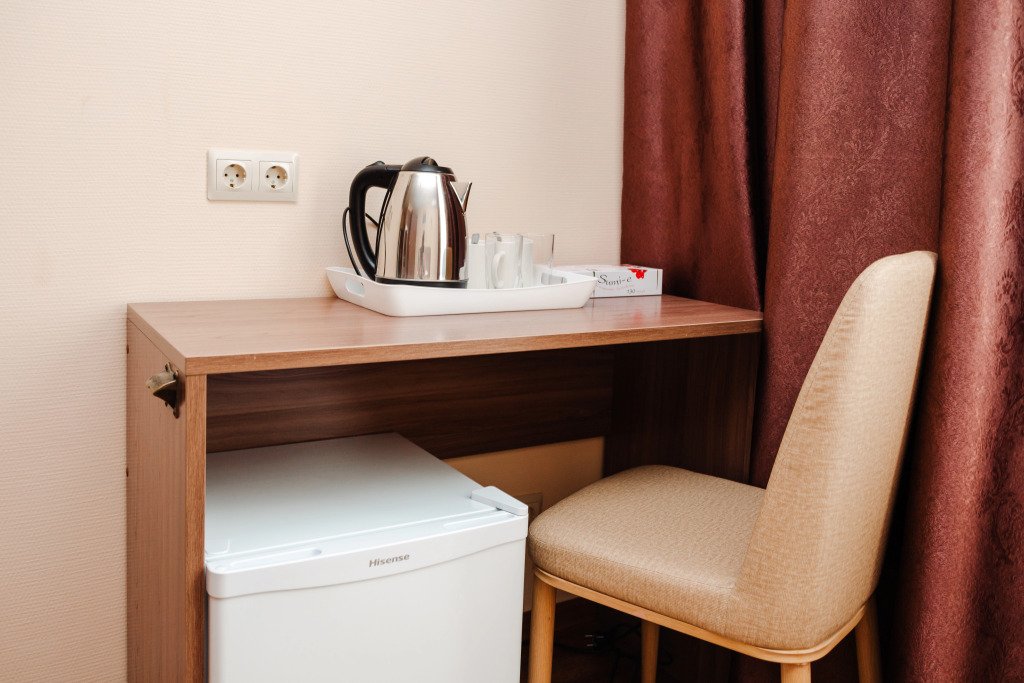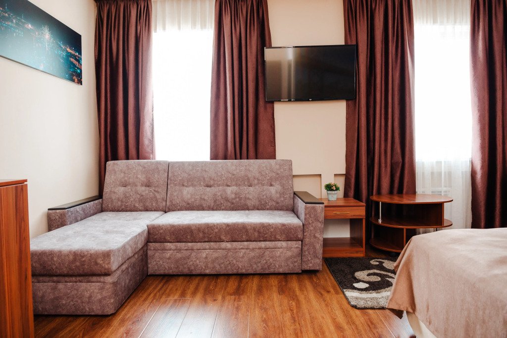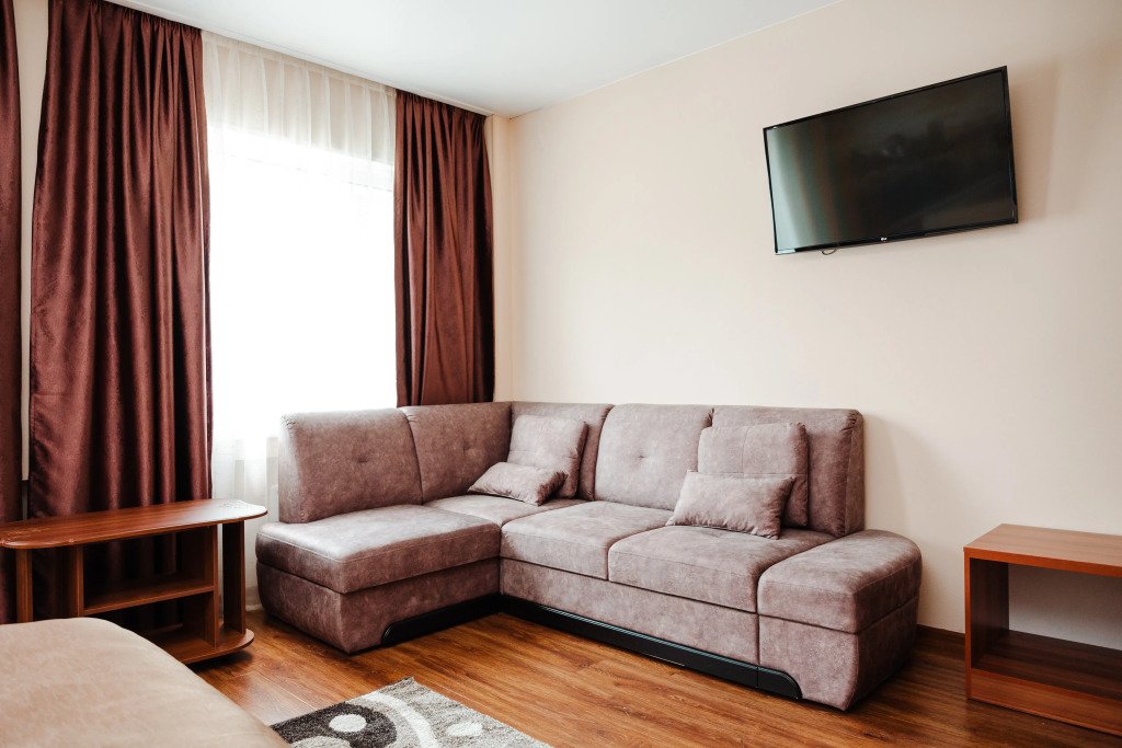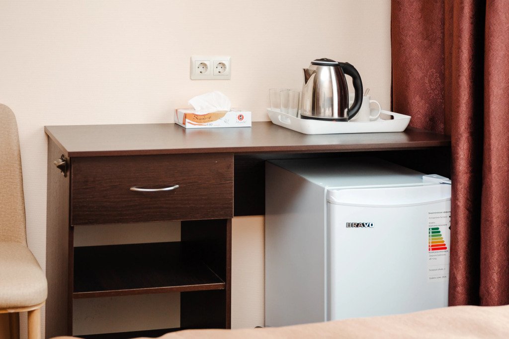 В номере вы найдёте телевизор. Оснащение зависит от выбранной категории номера.