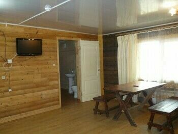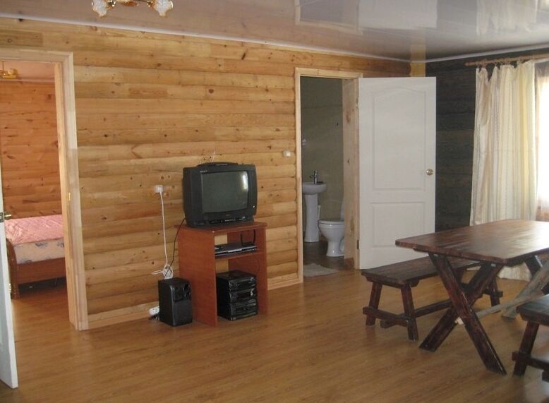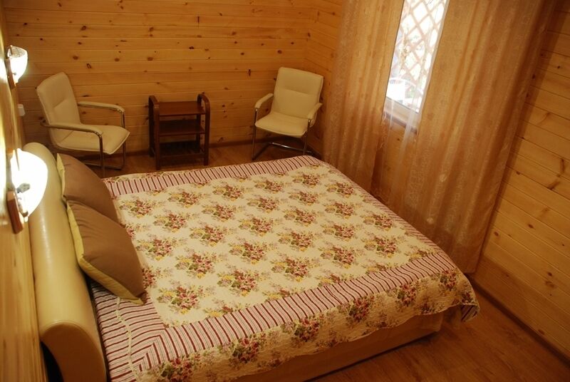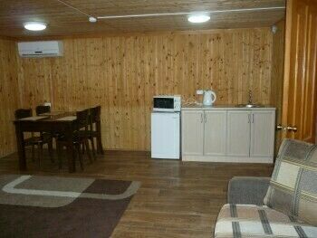 В номере есть: мягкая мебель, стол, шкаф, телевизор, холодильник, м/в печь, чайник, 2-х спальная кровать, тумбочка, комод; туалет, душевая кабина, умывальник (вода горячая, холодная); зона барбекю с мангалом на 10 человек.