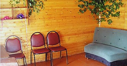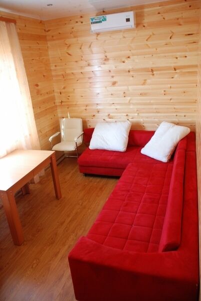 6-ти местные домики:(двухэтажный круглогодичный): 1 этаж - гостиная-столовая (стол, стулья), 2 этаж - спальня (односпальные или двуспальные кровати). Дом имеет веранду, оборудованную столами и лавками.
