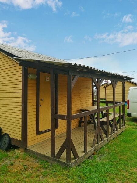 Проживание в 3-х местном летнем деревянном доме с верандой. Домики оборудованы кроватями, столами и стульями, а веранды — столами и лавочками. Умывальник и туалет есть на территории.