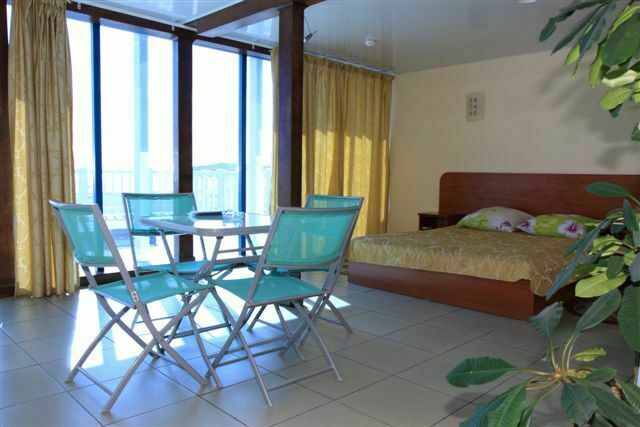 Номер состоит из одной комнаты, санузла и балкона с видом на море