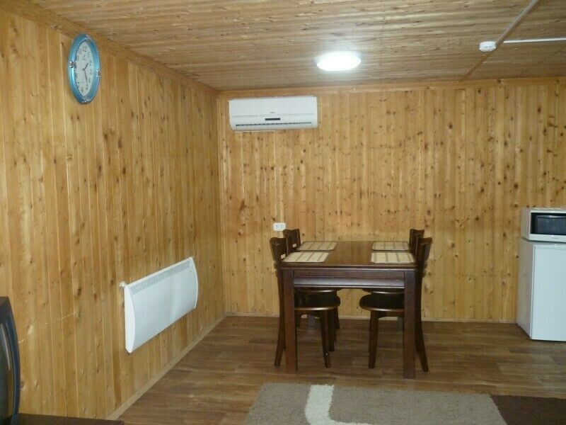 В номере: две 1,5 спальные кровати (соединенных вместе), телевизор, холодильник, чайник; туалет, душ, умывальник (вода горячая, холодная), зона барбекю (общая на два номера).
