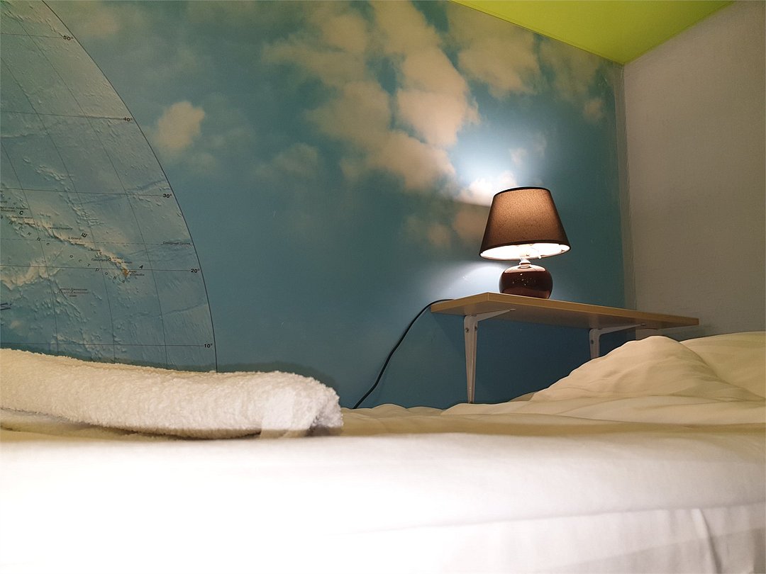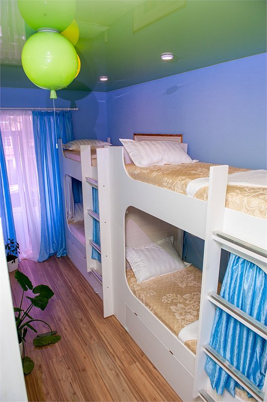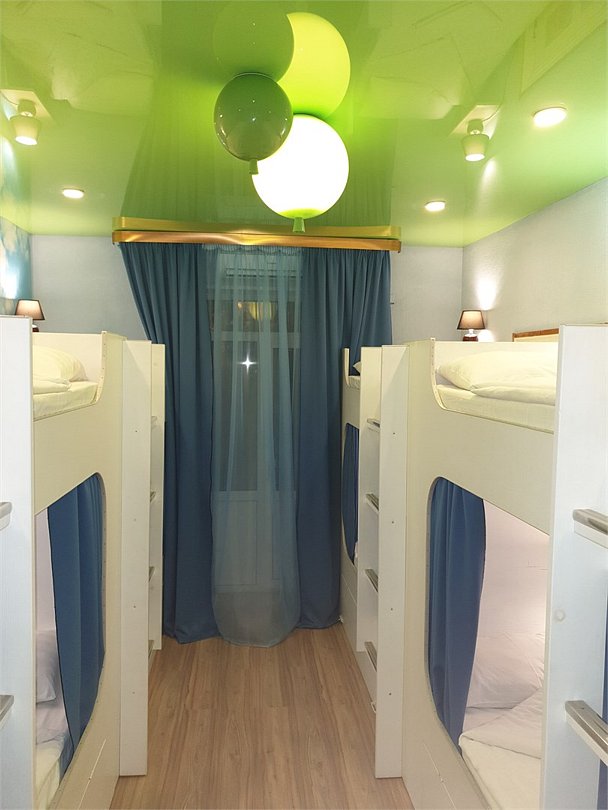 Уютная светлая комната c балконом для курения. Вместимость 8 человек. Имеет два типа спальных мест: Верхний ярус - обычное спальное место.Услуги и удобства
