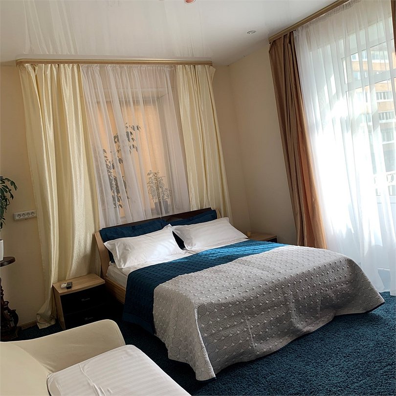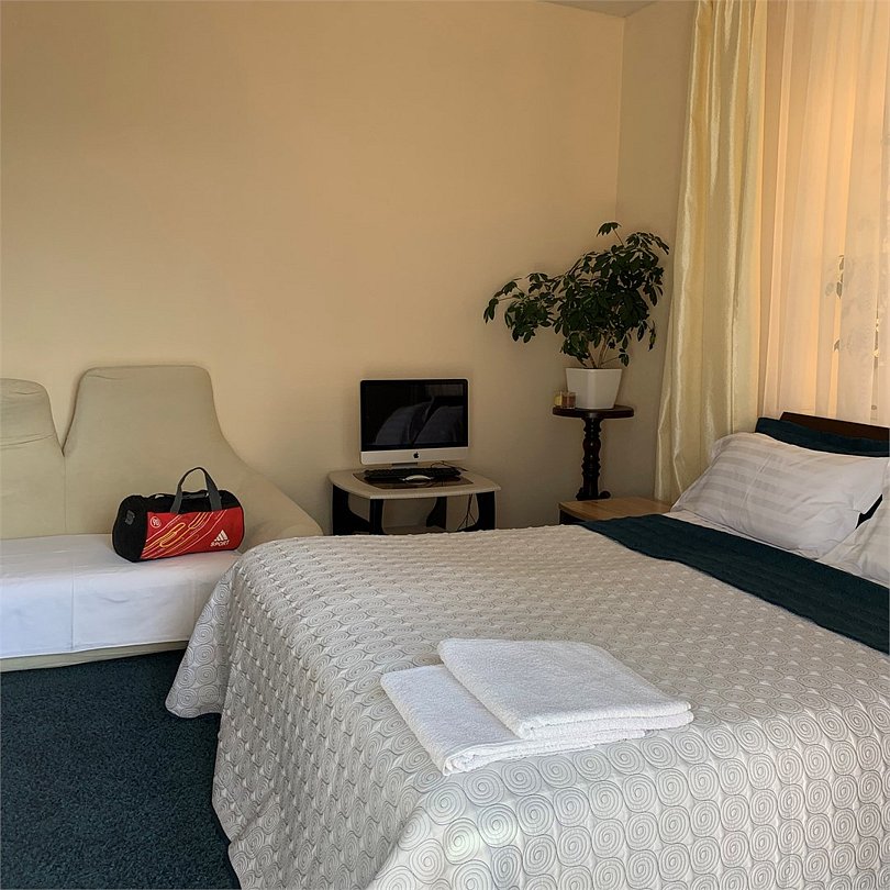 Номер оптимален для группы из 4 человек с ребёнком. Большая двухместная кровать и большой раскладной диван для двух взрослых и ребенка.Услуги и удобства