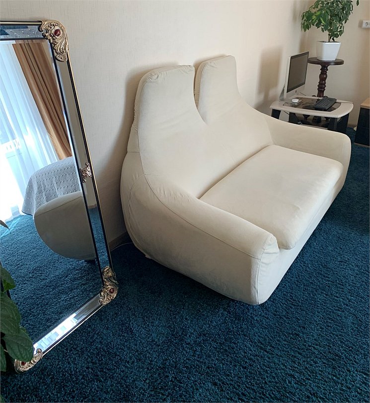 телевизор, музыкальный центр, Wi-Fi, интернет, персональный компьютер, банные полотенца, балкон, двуспальная кровать, гладильная доска, ортопедический матрас, диван, шкаф для одежды, вешалки, журнальный столик, пуфики, сейф, питьевая вода, ковровое покрытие, отопление, общая ванная комната, высокие потолки, санузел на этаже, диван-кровать, можно с питомцамиВ номере