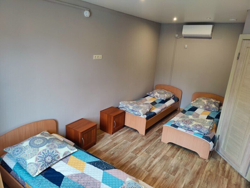 21 кв.м., 3 односпальные кровати, шкаф, холодильник, чайник, ТВ, кондиционер, с/у с душем