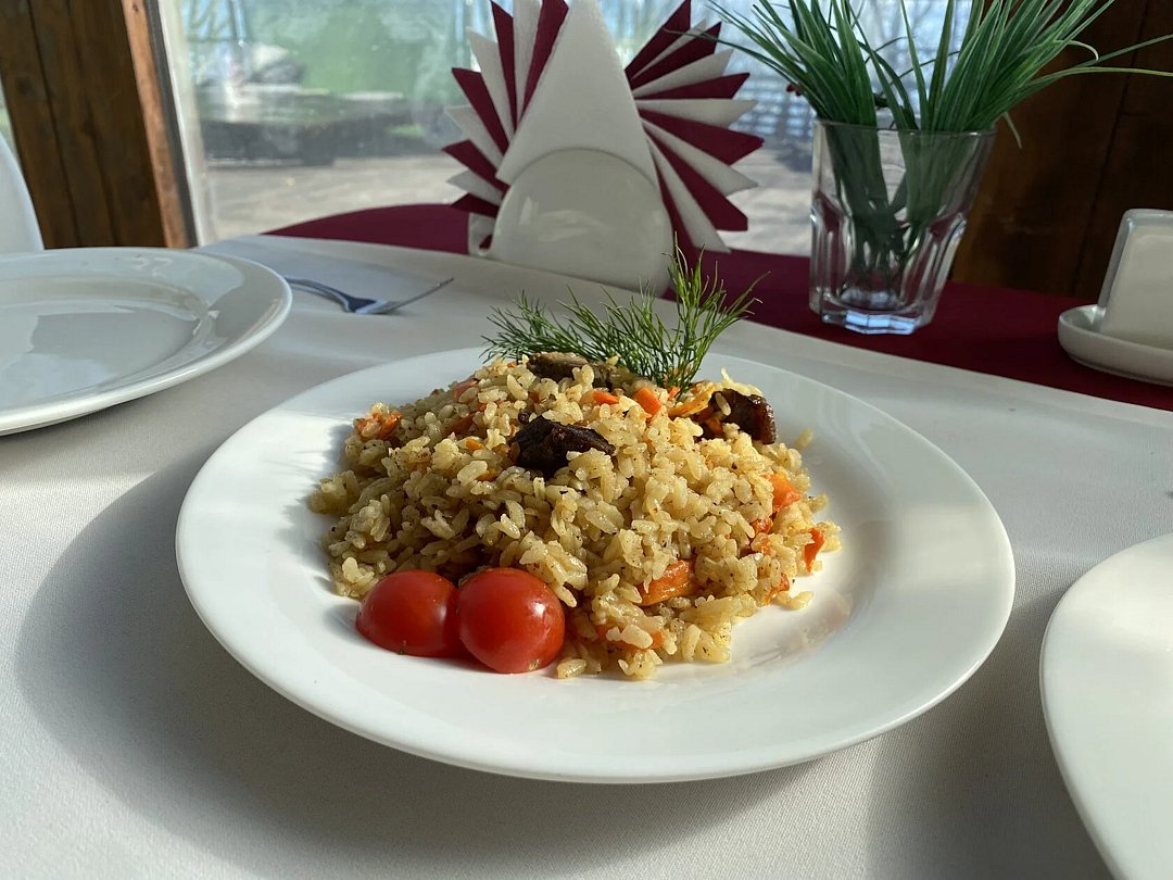 Центр отдыха также располагает кафе с живописным видом на море, в котором уютно разместятся до 80 человек. Меню предлагает блюда домашней кухни, а для самых маленьких гостей предусмотрены детские стульчики и специальное меню. Для активных малышей оборудован детский уголок, чтобы родители могли расслабиться.