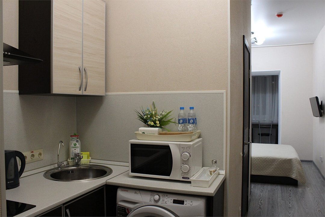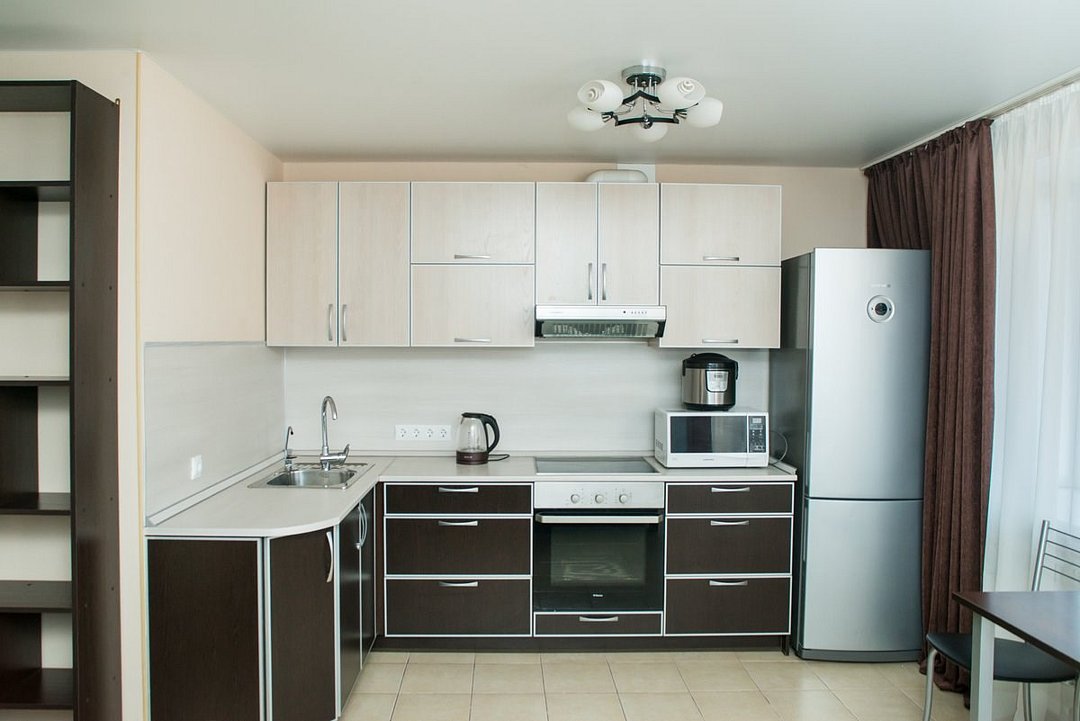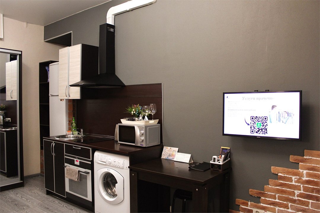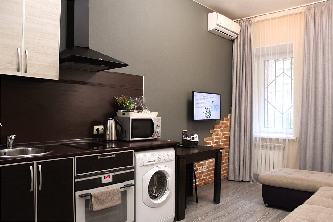 Wi-Fi, холодильник, кондиционер, фен, плита для приготовления пищи, микроволновая печь, санузел, гигиенические средства, стиральная машина, телевизор с плоским экраном, кухонный уголокВ апартаментах