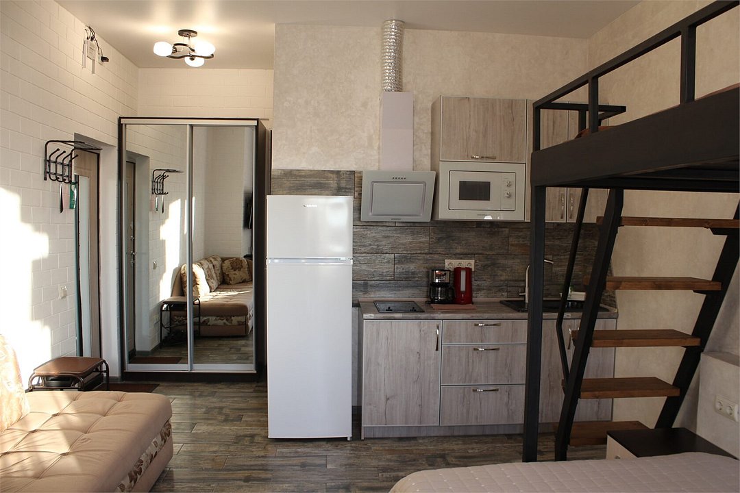 Wi-Fi, холодильник, кондиционер, фен, плита для приготовления пищи, микроволновая печь, ванна, санузел, гигиенические средства, набор посуды, стиральная машина, телевизор с плоским экраном, кухонный уголокВ апартаментах