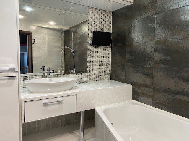 два телевизора, домашний кинотеатр, Wi-Fi, интернет, холодильник, кондиционер, фен, весы, плита для приготовления пищи, кофемашина, микроволновая печь, утюг, ванная комната, душевая кабина, биде, теплый пол, банные полотенца, тапочки, балкон с красивым видом, кровать «King size», полутораспальная кровать, диван, стулья, шкаф для одежды, гардеробная, вешалки, обеденный стол, барная стойка, зеркало, унитаз, раковина, мягкая мебель, отдельный вход в номер, вид на море, вид на город, стол, туалет, панорамные окна, цифровое тв, диван-кровать, раскладной диван, телевизор с плоским экраном, шкаф-купеВ апартаментах