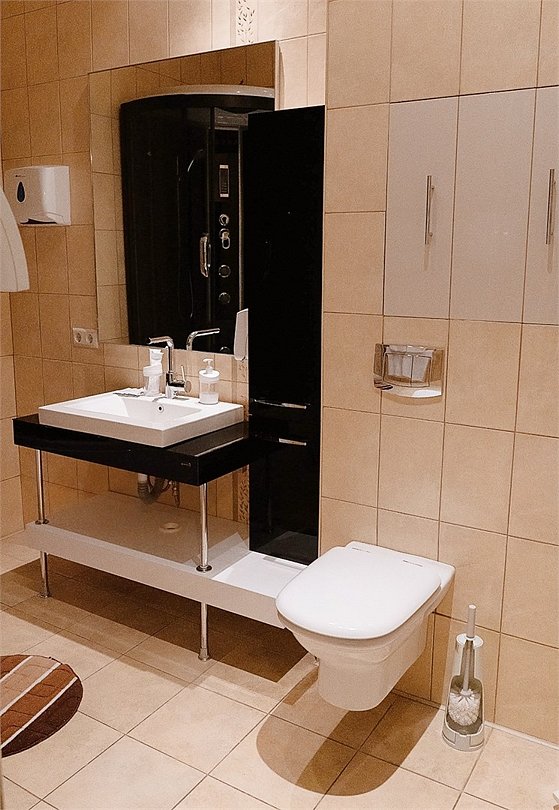 Wi-Fi, холодильник, кондиционер, настольные лампы, фен, будильник, плита для приготовления пищи, микроволновая печь, утюг, обогреватель, ванная комната, ванна, санузел, водонагреватель, теплый пол, банные принадлежности, банные полотенца, тапочки, гигиенические средства, косметические средства, двуспальная кровать, гладильная доска, шкаф для одежды, вешалки, обеденный стол, зеркало, кухня, чайник, унитаз, раковина, кухонная посуда, стул, тумба, туалетные средства, туалет, цифровое тв, телевизор с плоским экраном, телевизор со Smart TV, теплые полы, номер для некурящихВ гостиничном номере