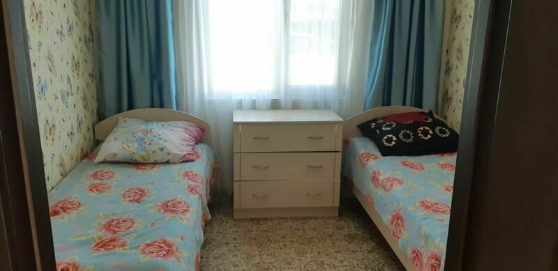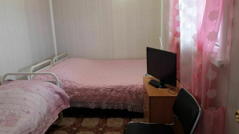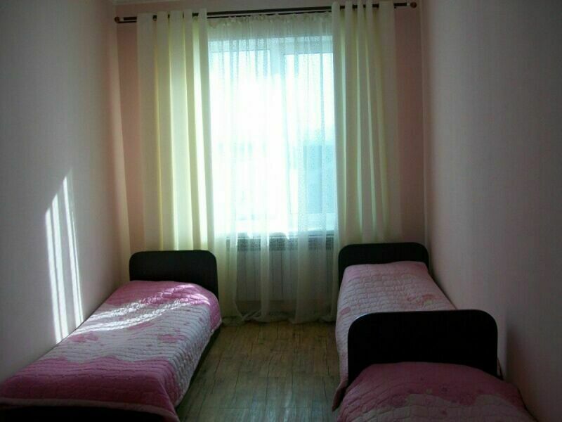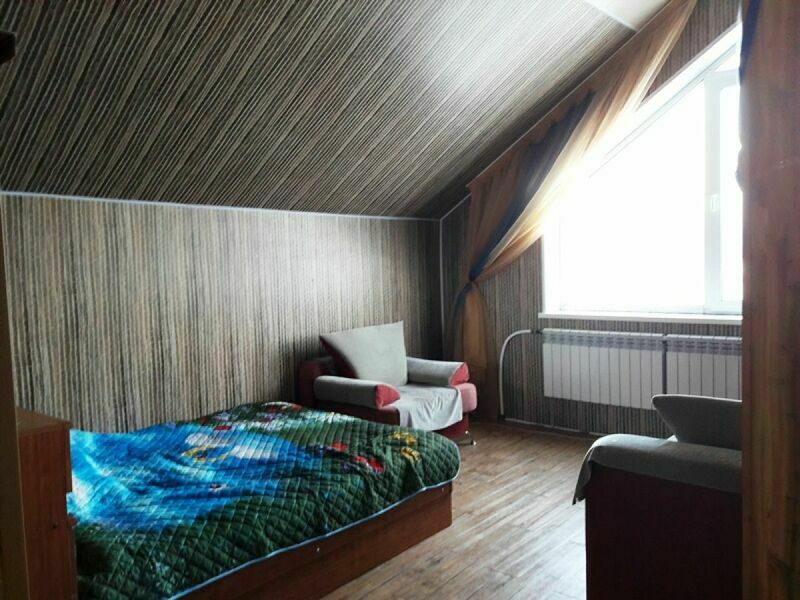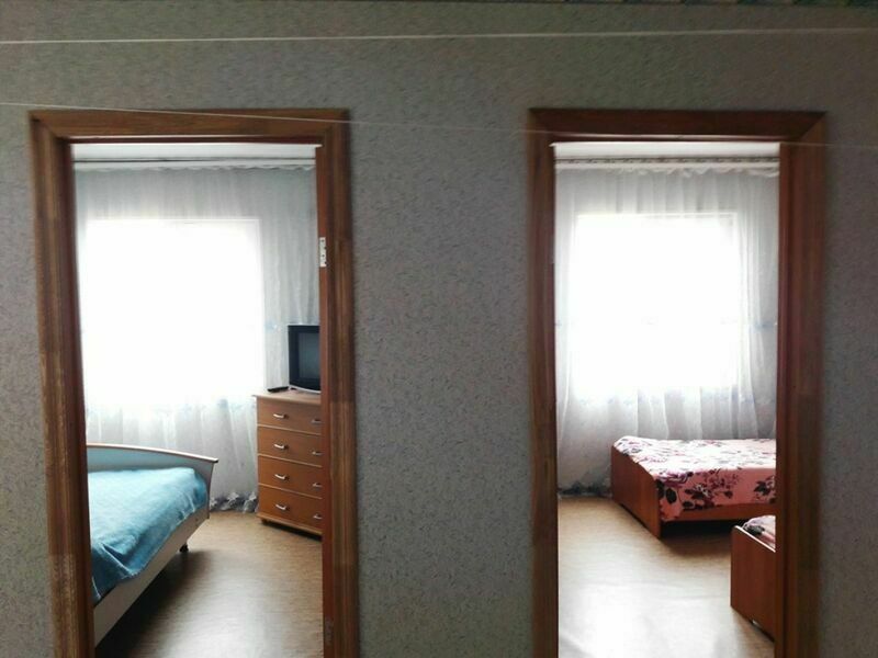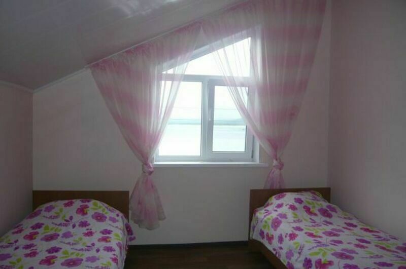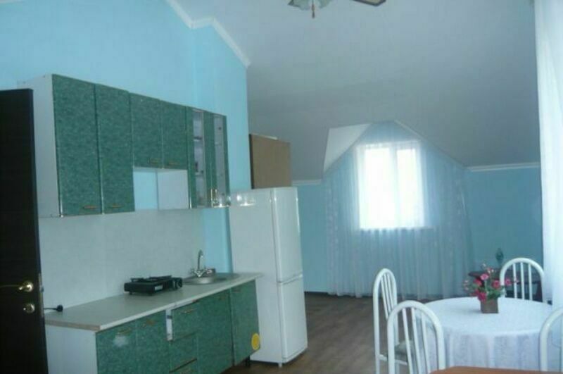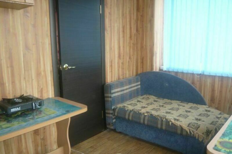 Комната 16 кв.м., двуспальная кровать, односпальная кровать, холодильник, телевизор, комод, пастельное белье, обед.стол + стулья, электрочайник. На этаже оборудованная кухня на 3 номера. Санузел и ванная комната расположена на этаже (пользуется только проживающие в этой комнате), холодная и горячая вода. Кухня находится на этаже, рассчитана для номеров 6, 7, 8. Посуда, чайник, плита у каждого номера своя. Баллоны для газовой плиты приобретаются отдыхающими самостоятельно.