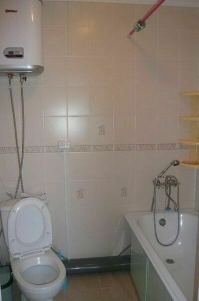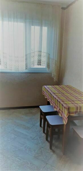 Большая комната, кухня, санузел (кафель, ванна, унитаз, холодная и горячая вода, теплые полы). В комнате двухспальная кровать, двухъярусная кровать, телевизор, холодильник, кух.гарнитур, кух.стол, комод, чайник, посуда, постельное белье.
