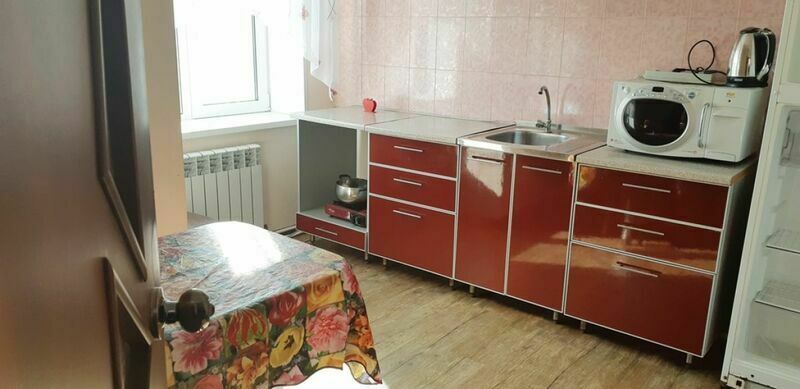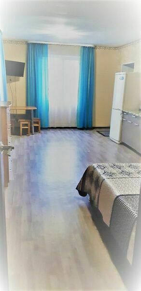 Большая комната, кухня, санузел (кафель, ванна, унитаз, умывальник, холодная и горячая вода, теплые полы). В комнате двухспальная кровать, шкаф, телевизор, холодильник, кух.гарнитур, кух.стол, газовая плита (газовые баллоны приобретаются самостоятельно) комод, посуда, постельное белье.