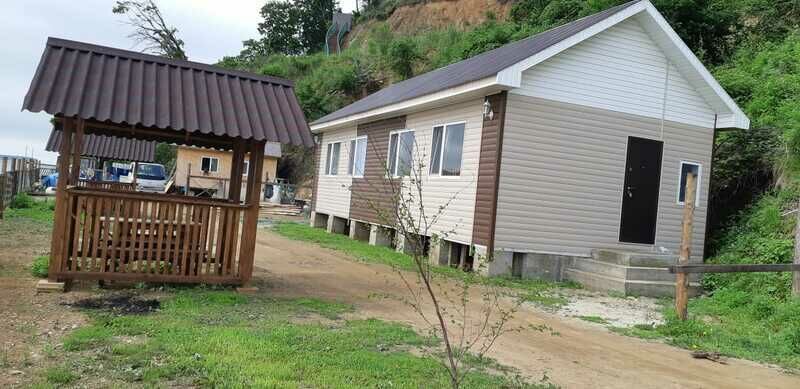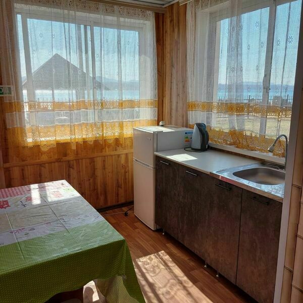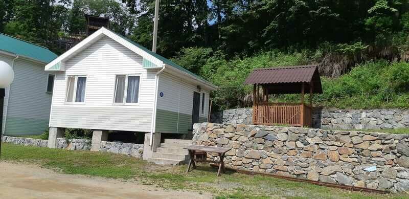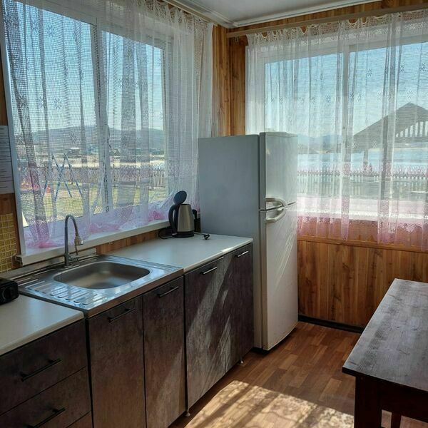 Небольшой домик, 1/2 домика рассчитана на 3 человека. В комнате: (двухспальная кровать, односпальная кровать, комод, телевизор, тумба и зеркало. Сан. узел в доме: ванная, унитаз, умывальник, холодная и горячая вода (титан). Хороший, свежий ремонт На открытой веранде, с которой открывается красивый вид на бухту расположена зона кухни. Есть холодильник, газовая плита, чайник, вся необходимая посула.