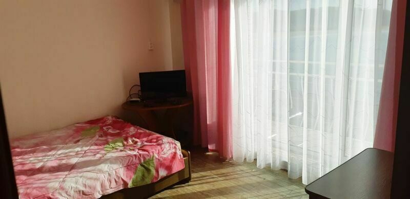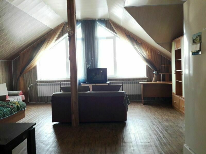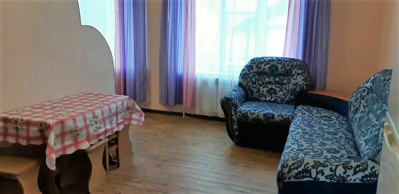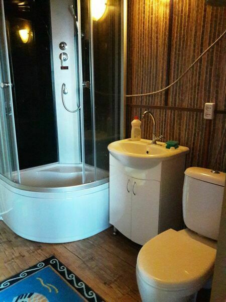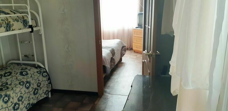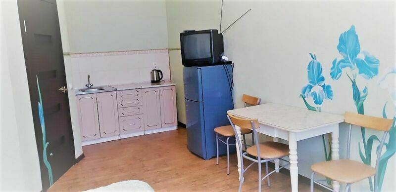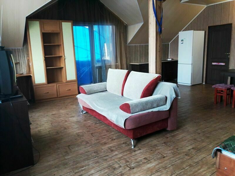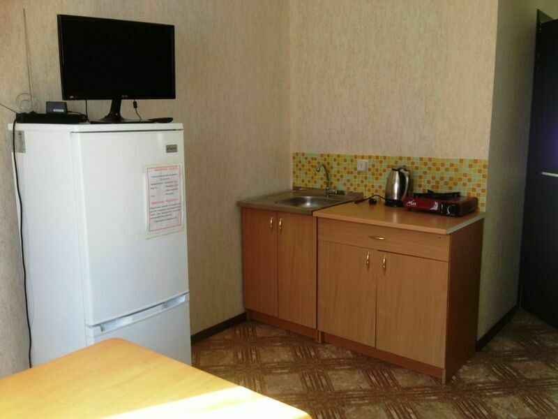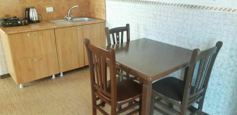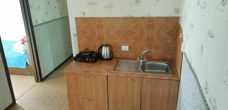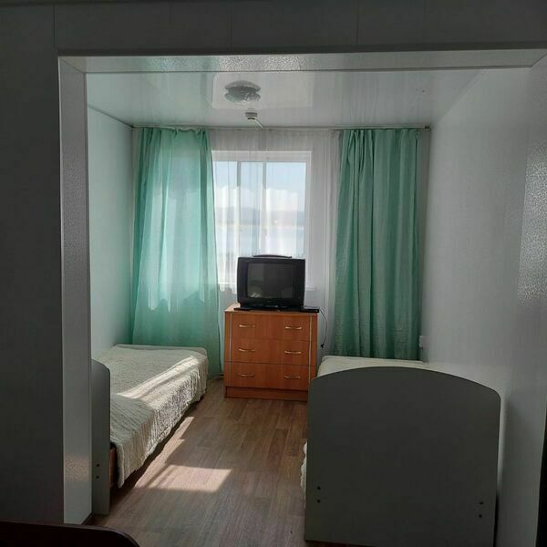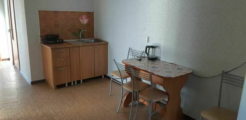 Просторный номер. В комнате два двухспальных дивана, комод, телевизор, холодильник, обеденная зона, кухонный гарнитур. Предоставляется постельное белье. Есть вся необходимая посуда, чайник, газовая плита (без баллонов). В комнате свой санузел с душевой кабинкой, унитазом и раковиной, холодная и горячая вода. Номер рассчитан на 4 человека