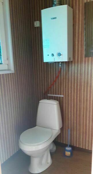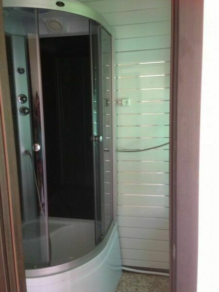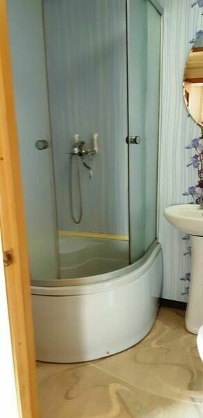Гостиная: кухонный гарнитур, холодильник, газовая плита (баллоны приобретаются самостоятельно), обеденная зона, диван раздвижной, вся необходимая посуда. Сан.узел: кафель, ванная, унитаз, титан. Хороший, свежий ремонт, окна КБЕ.