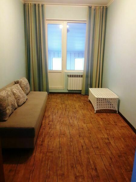 Номер состоит из двух смежных комнат по 15 кв.м. каждая, большой просторной кухни, санузла В одной комнате двухспальный раскладной диван, телевизор, шкаф, журнальный столик, телевизор Во второй комнате двухспальная кровать, односпальная кровать, комод, телевизор. На кухне: кухонный гарнитур, холодильник, обеденная зона, эл.чайник, вся необходимая посуда,. Санузел: унитаз, раковина, душевая кабинка, холодная и горячая вода. Балкон большой и просторный ( на нем расположена кухня)