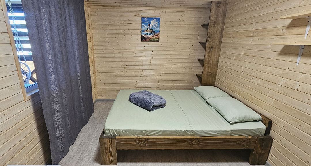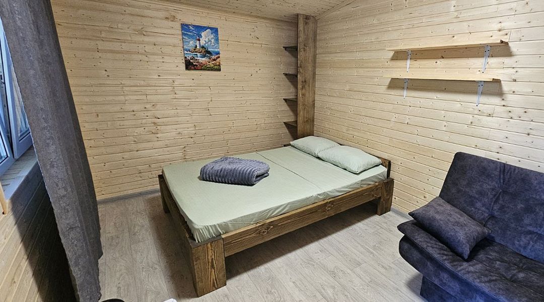 - один комплект постельного белья застелен на кровати; второй комплект постельного белья, 2 подушки и плед находятся в диване (для 4х местных домов).