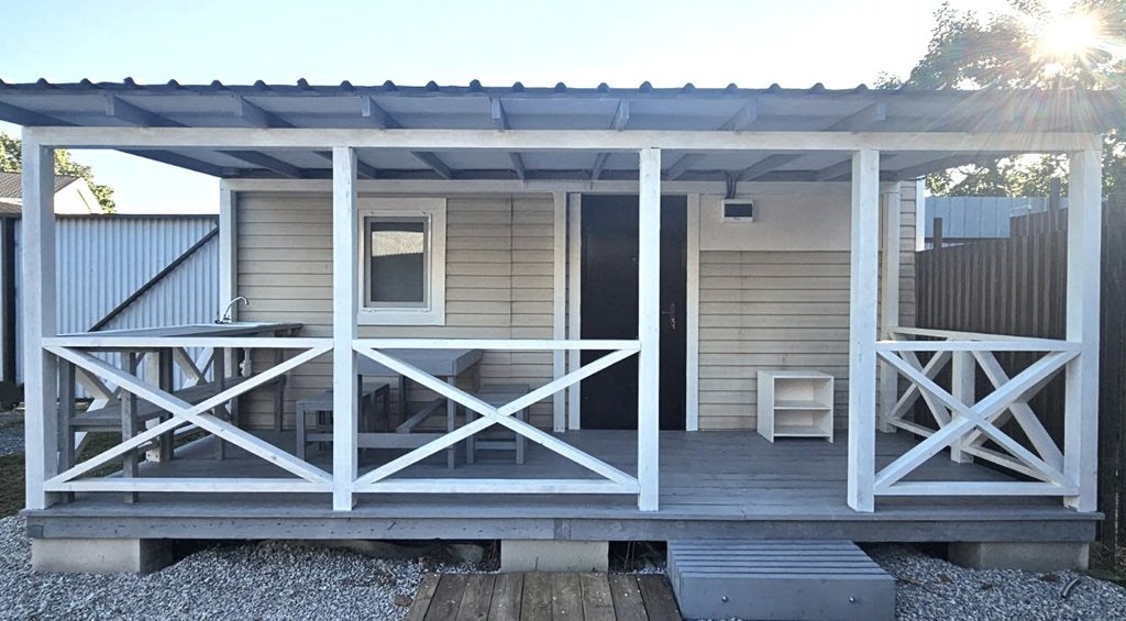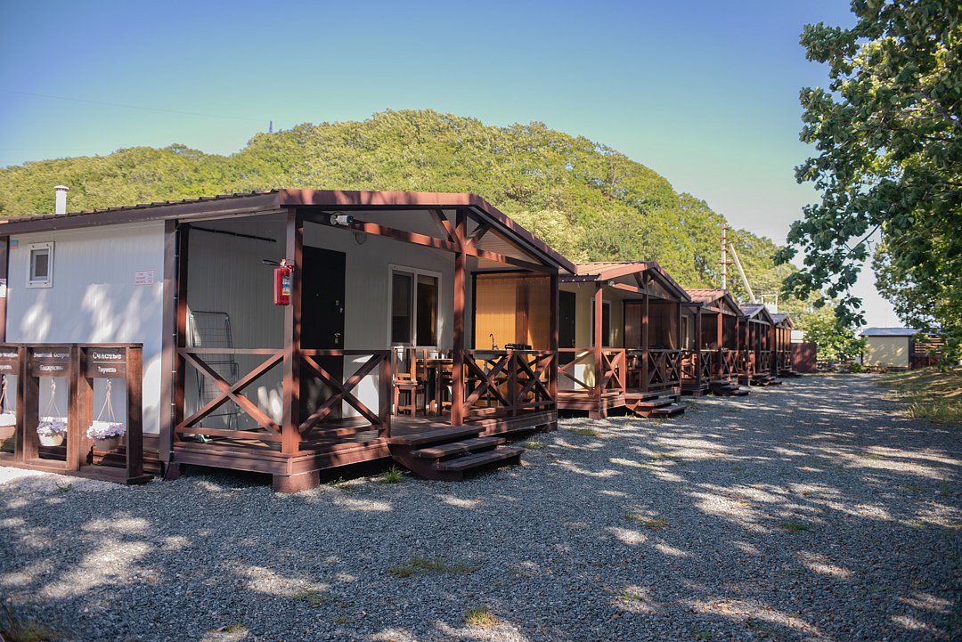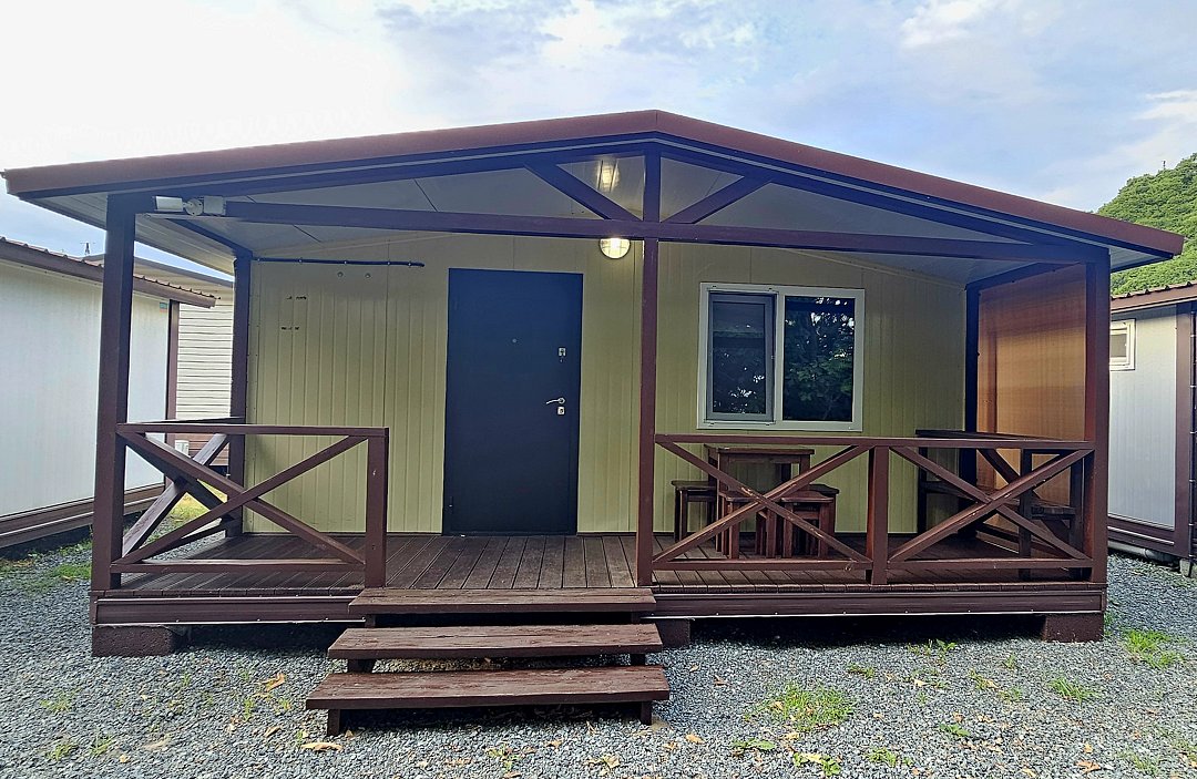 Гостевые домики и номера оснащены всем необходимым для вашего удобства: современной мебелью, санузлом с душем (горячая и холодная вода), кондиционерами, холодильниками, сушилками для белья и полками для вещей. В двухместных номерах и некоторых домиках установлены телевизоры. Каждый домик имеет собственную веранду с обеденной зоной, а в номерах оборудован балкон.